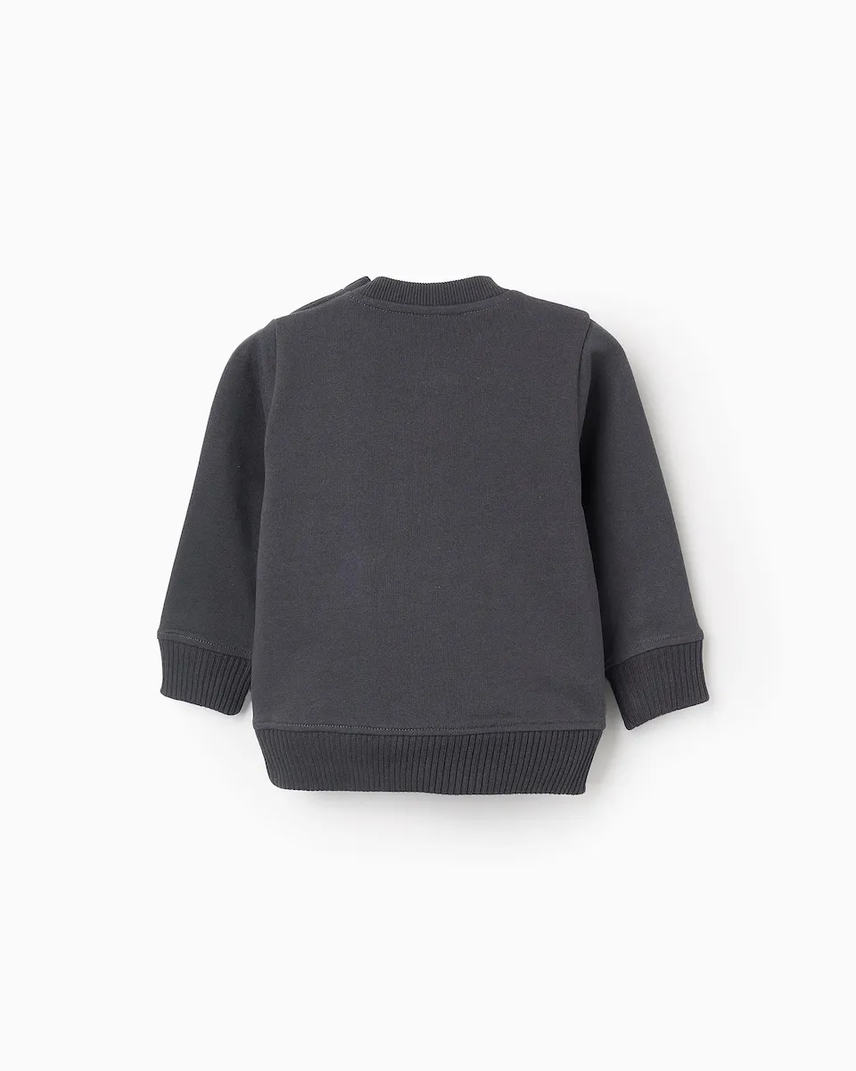 Свитшот для мальчика, 100% хлопок, с рельефной надписью на груди и карманом-кенгуру. Кнопки на плече для легкого одевания. Ребристые манжеты для идеальной посадки. Сдержанный и элегантный свитшот, идеально подходящий для любого стиля!