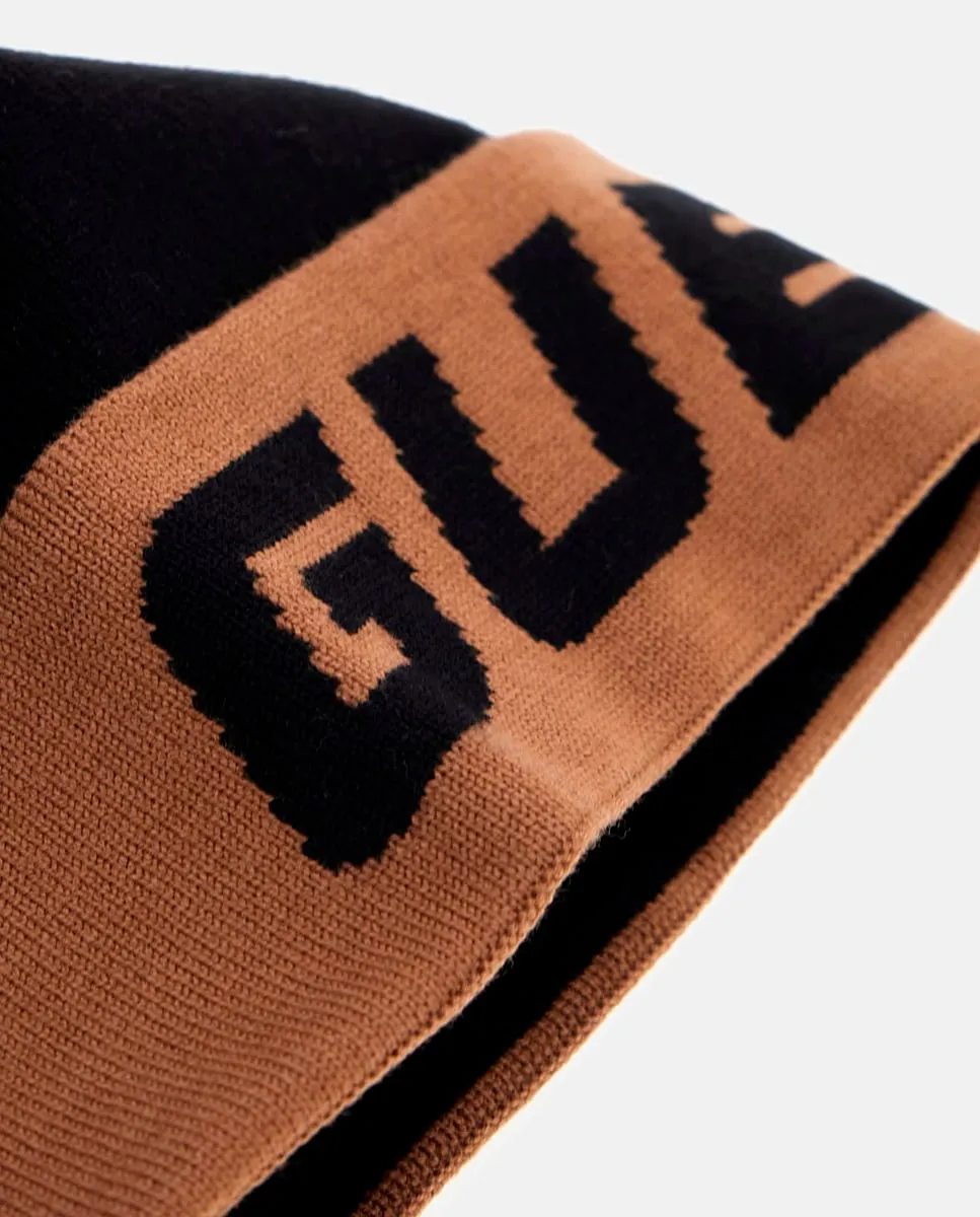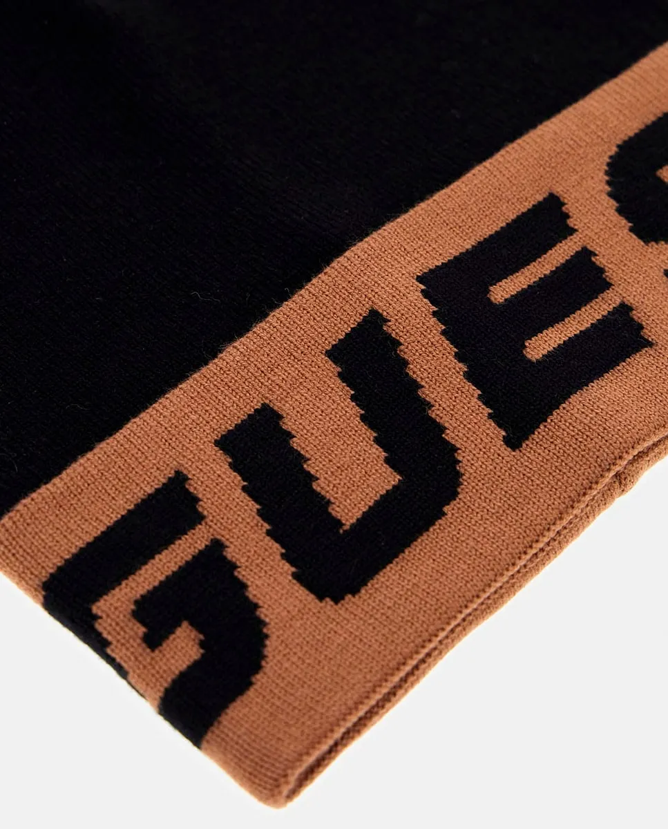 Черная и темно-синяя шапка-бини с надписью GUESS спереди