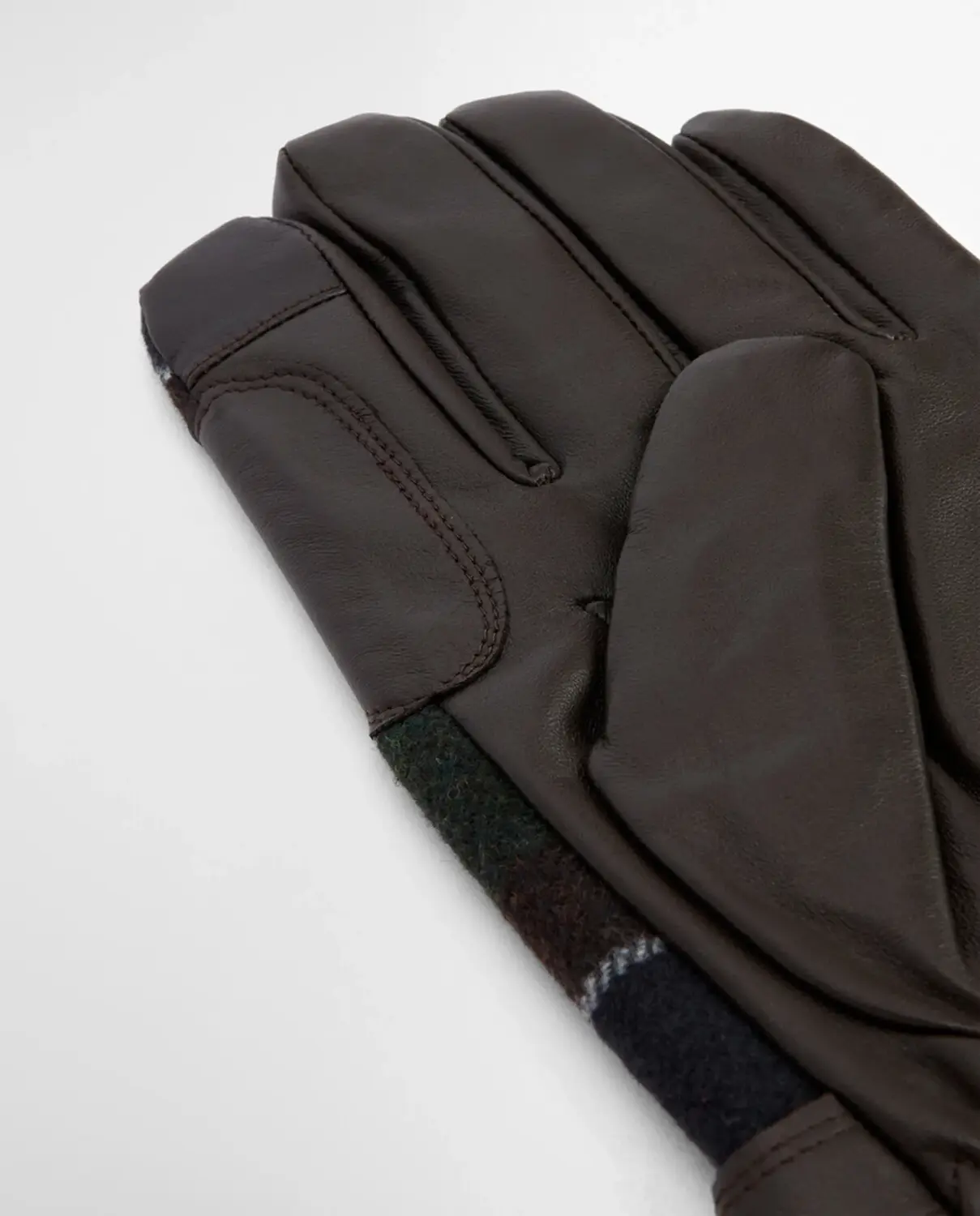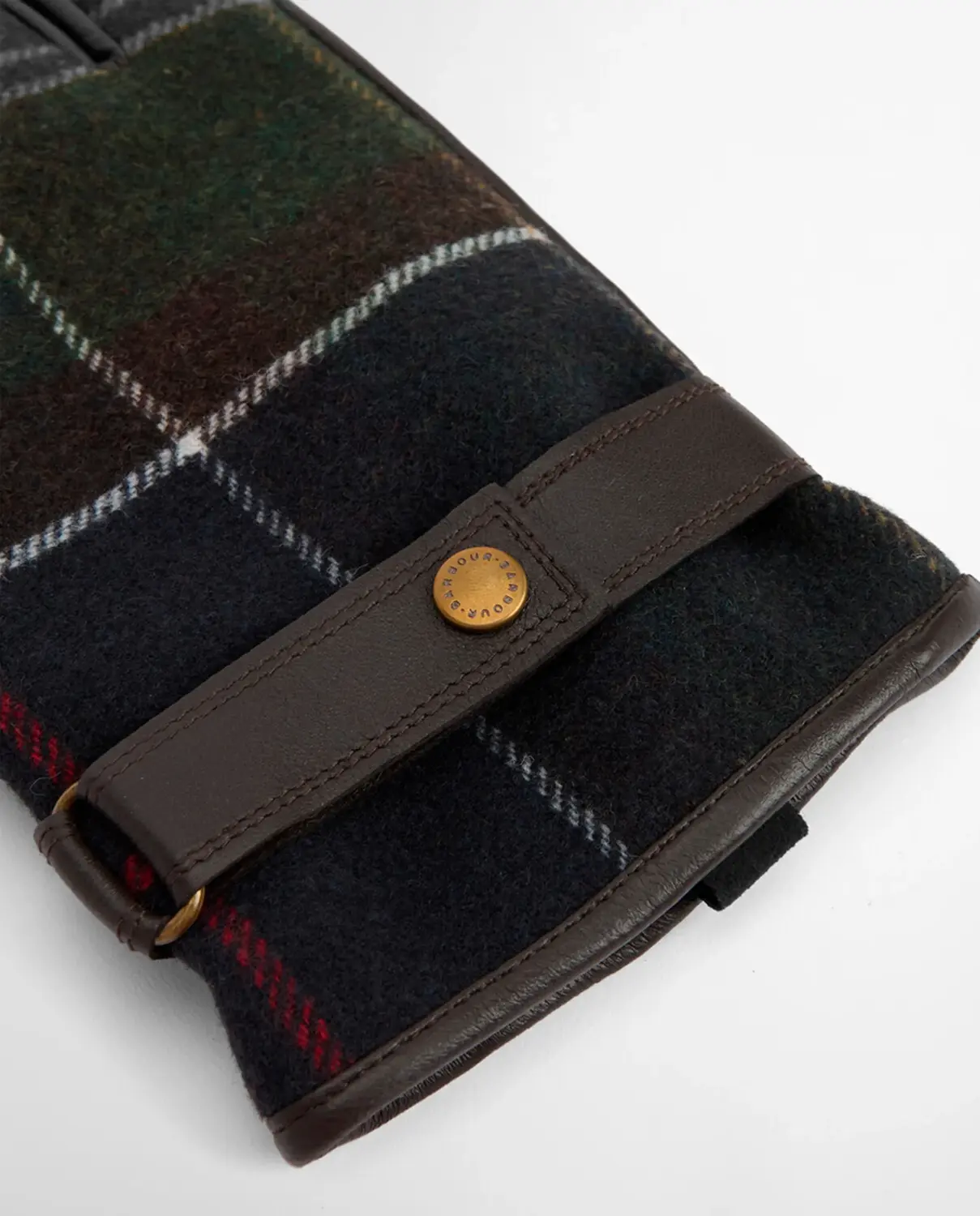 Эти водонепроницаемые перчатки сочетают высококачественную кожу с тканью из шерстяной смеси с характерной шотландкой Barbour. Они оснащены ремешком с кнопкой на манжете для идеальной посадки.
