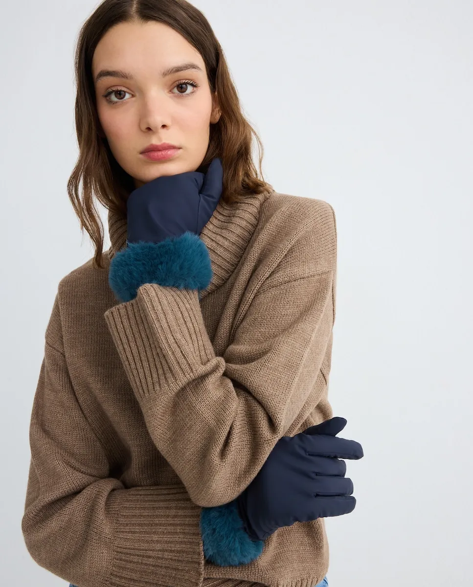 Комбинированные перчатки из меха Jo & Mr. Joe, синий