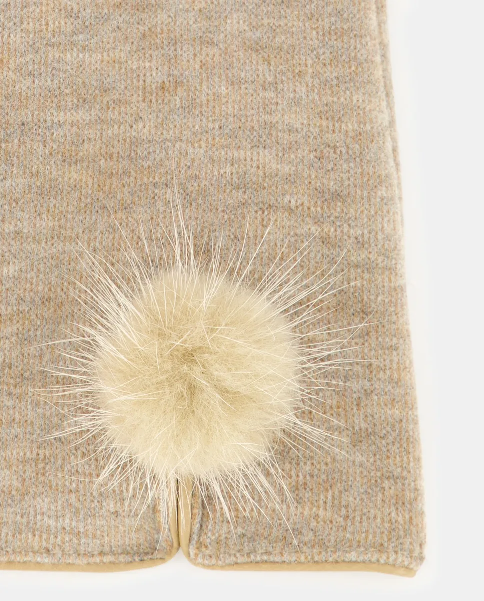 Бежевые перчатки из мягкой трикотажной ткани с подкладкой, деталями на тыльной стороне руки и помпоном из искусственного меха.