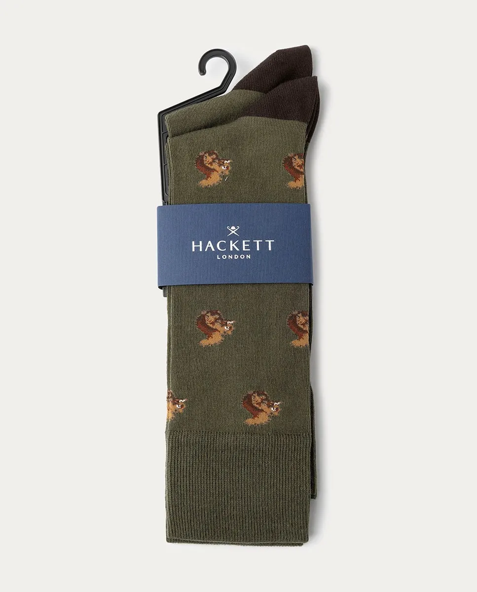 Набор из 2 пар носков из чесаного хлопка, состоящий из однотонного носка и носка с жаккардовым рисунком белок, с контрастным мыском и логотипом на подошве.