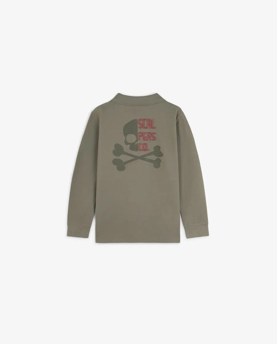 Детская рубашка поло с длинным рукавом и рисунком на спине Scalpers, хаки