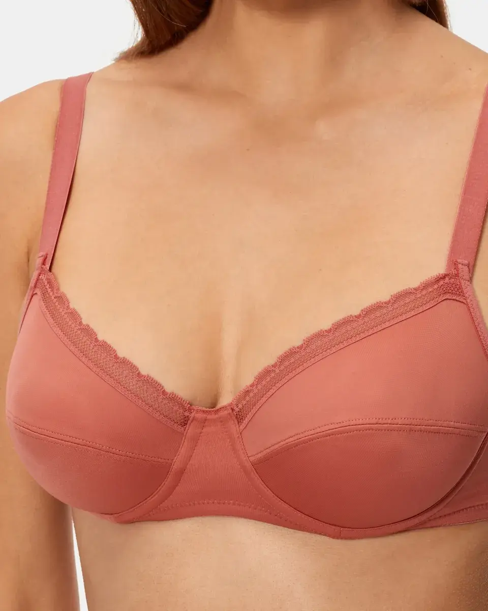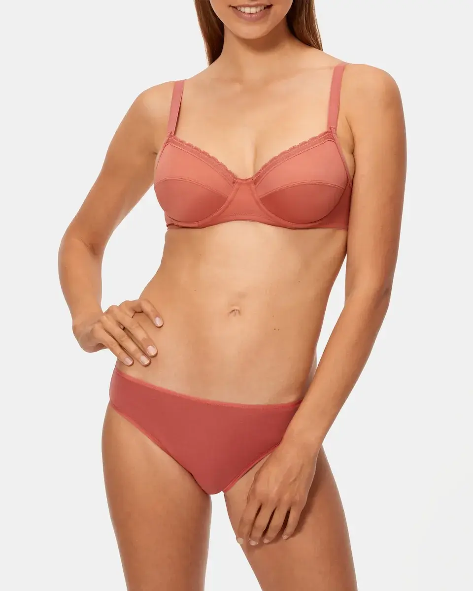 Бюстгальтер на каркасах из микрофибры. Очень незаметное кружево. Классическая форма, подчеркивающая бюст.