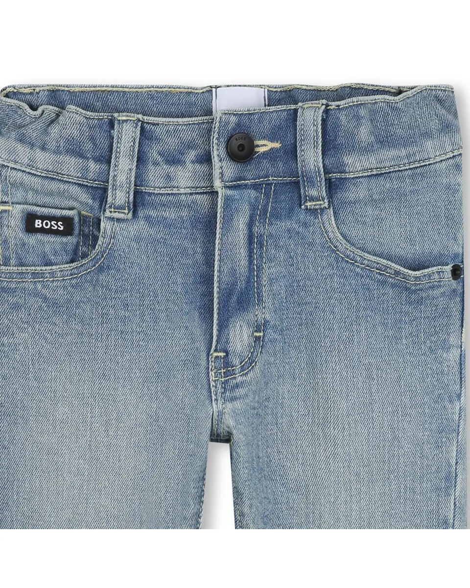 Эти джинсы из денима и хлопкового эластана от BOSS сочетают комфорт с современным стилем. Их эластичный пояс сзади обеспечивает идеальную посадку, а передняя застежка на пуговицы и пять карманов добавляют практичные и элегантные детали. Идеальная модель для повседневного, но утонченного образа, подходящая для любого случая.