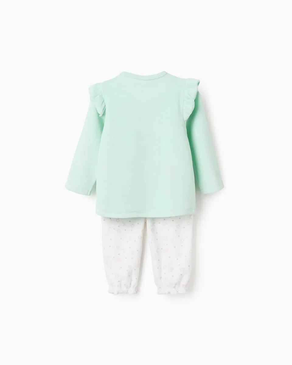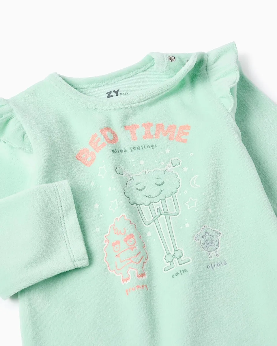 Комплект из бархата светло-зеленого и белого цвета, выполненный из смеси хлопка, обеспечивающей нежное прикосновение для чувствительной кожи. Включает футболку с длинными рукавами с забавным рисунком, который светится в темноте, на тему Монстров Эмоций. Брюки с веселым мотивом и эластичной талией обеспечивают удобную и надежную посадку.