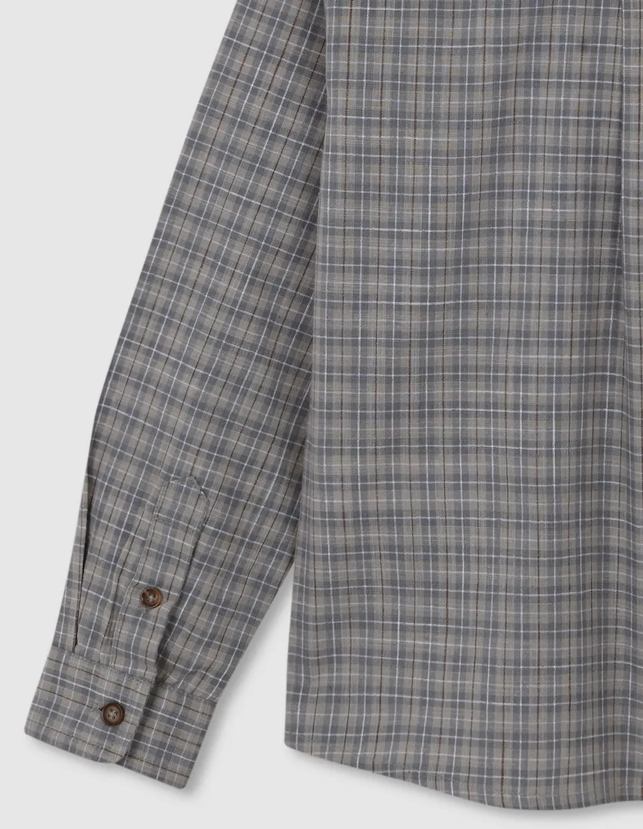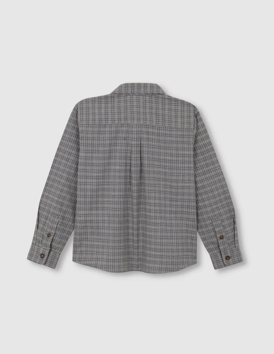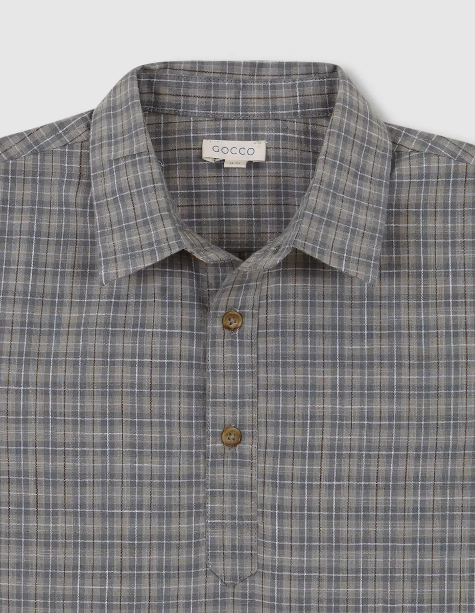 Клетчатая рубашка с воротником-рубашкой и короткой планкой.