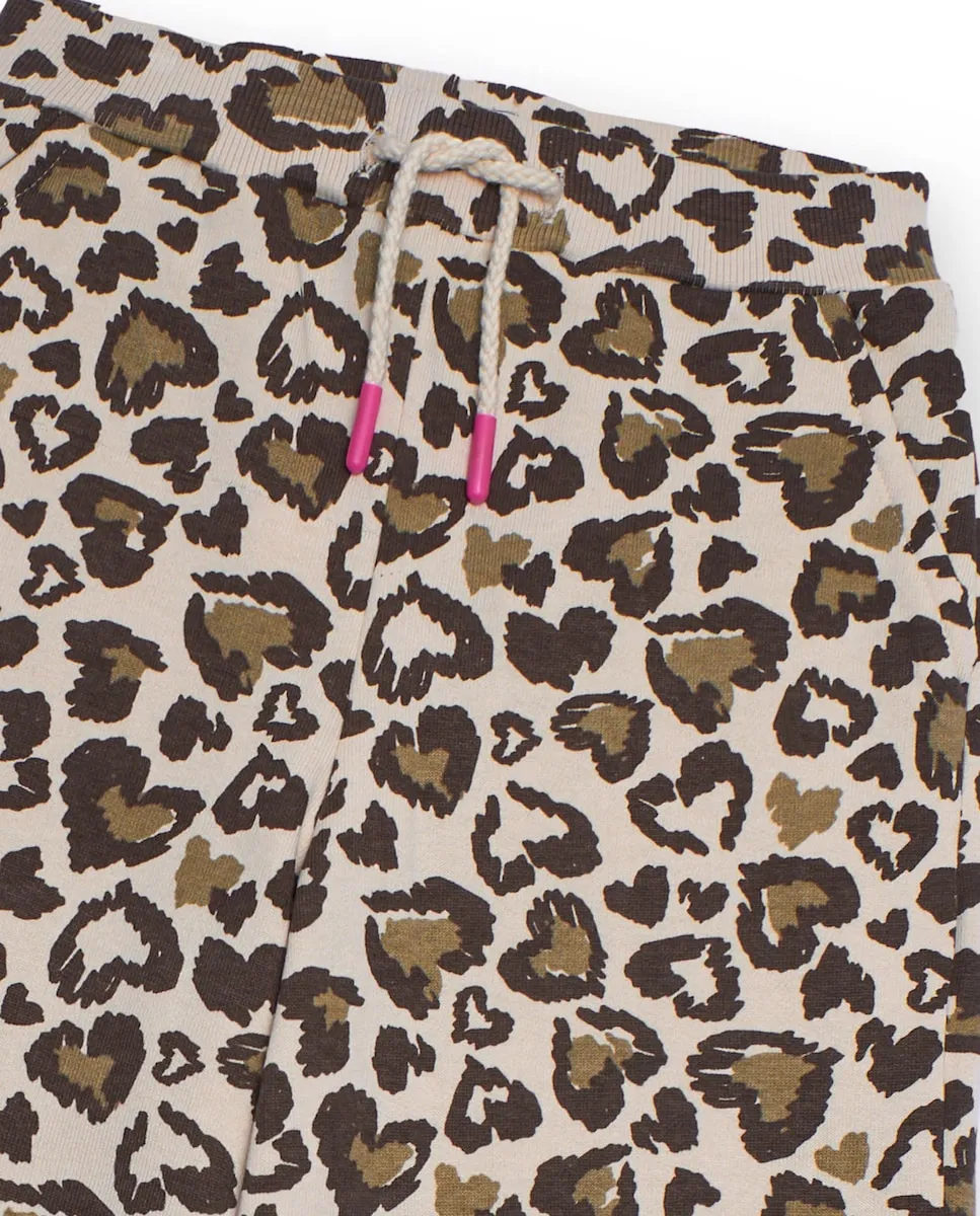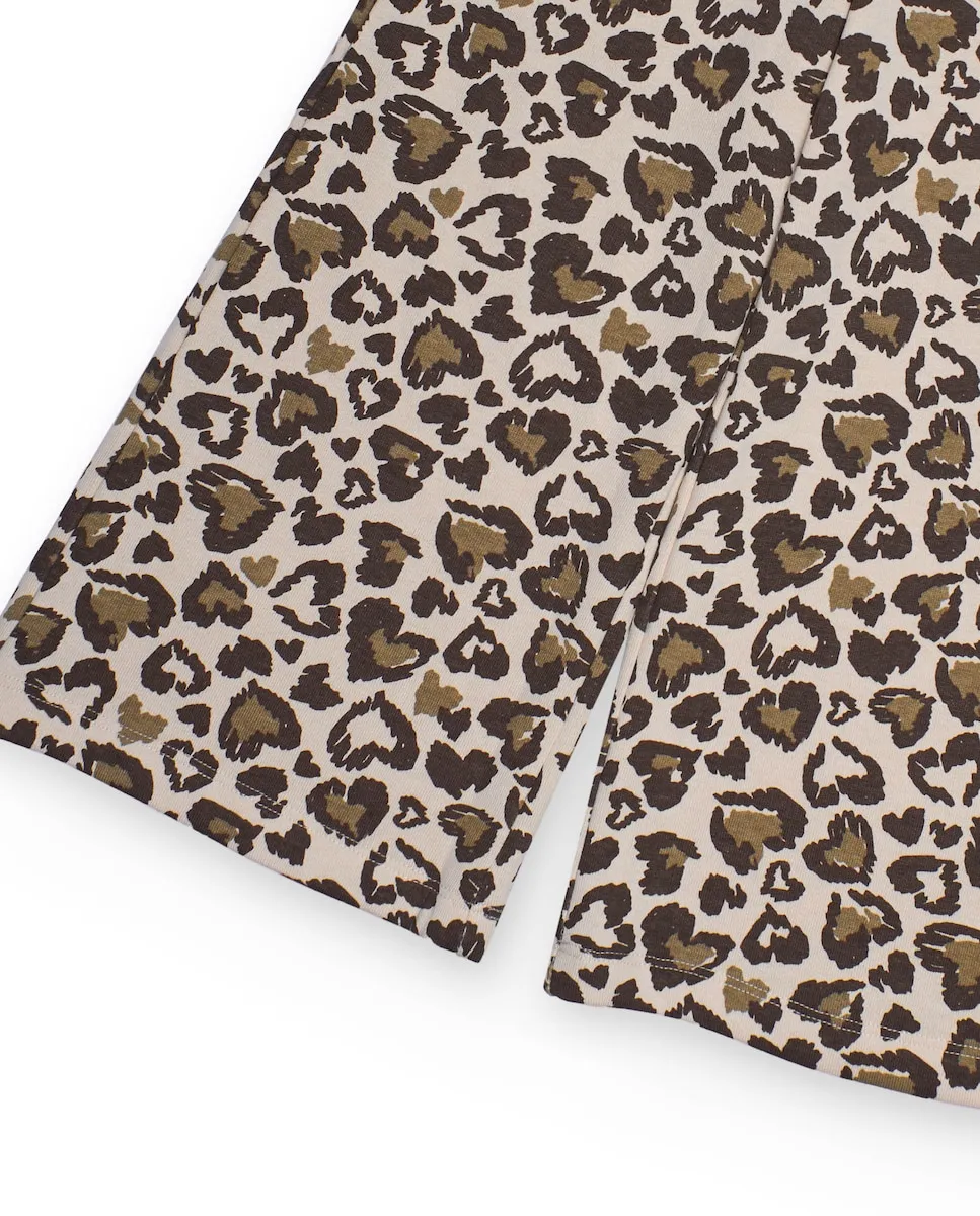 Широкие брюки для девочки, выполненные из мягкой и легкой ткани, украшенные эффектным животным принтом в коричневых тонах на светлом фоне. Оснащены эластичным поясом и контрастным регулируемым шнурком для дополнительного комфорта. Идеально подходят для повседневных и забавных образов с современным акцентом.