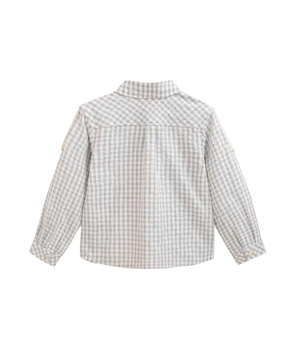 Рубашка для мальчика в клетку виши Dadati, серый