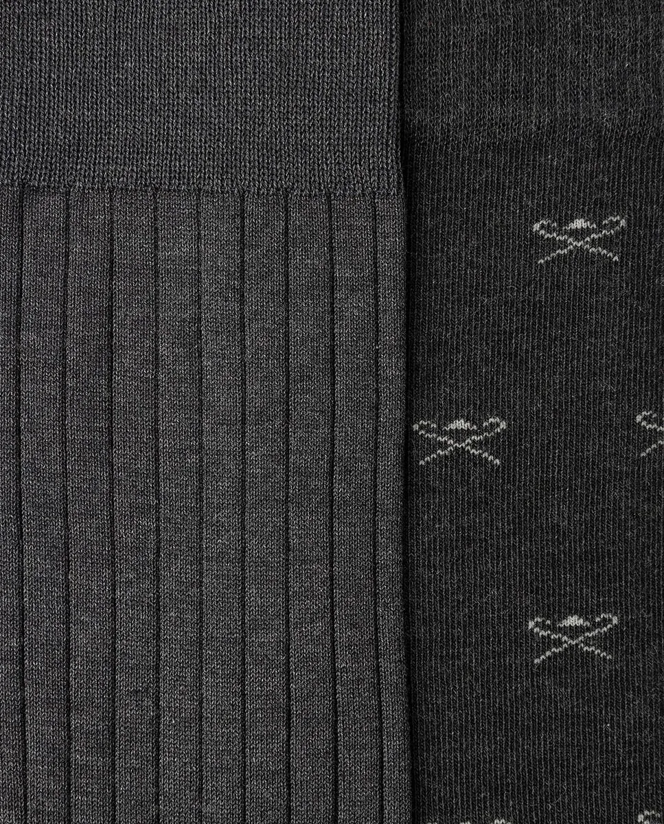 Набор из 2-х носков из чесаного хлопка: один с ребристой вязкой, другой с жаккардовым логотипом-иконкой, с контрастным носком и печатным логотипом на подошве.