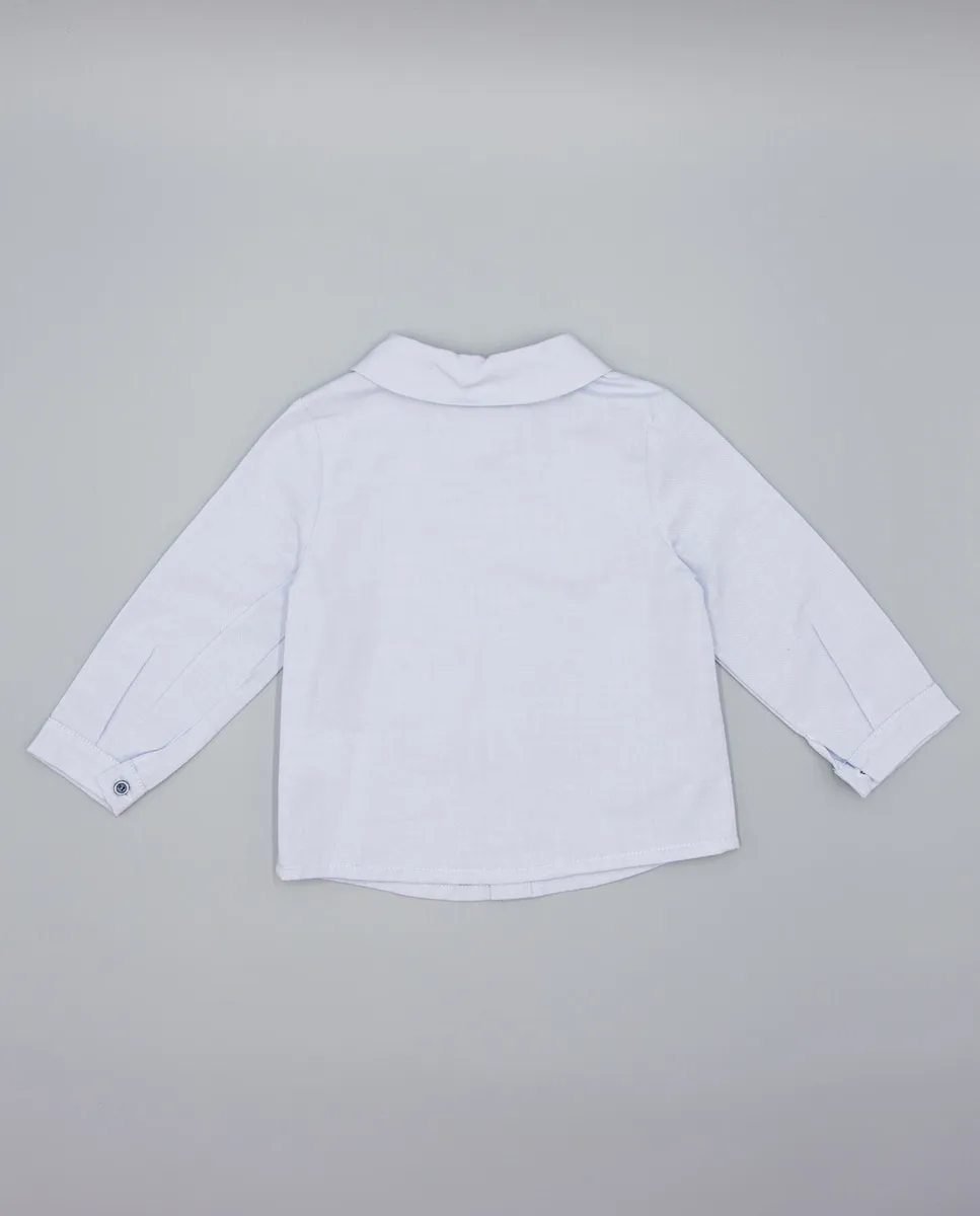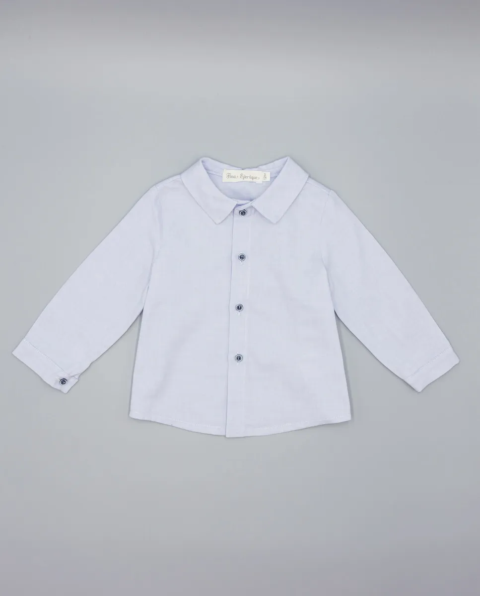 Голубая оксфордская рубашка с отложным воротником. Пуговицы из уретана с контрастным синим цветом. 100% хлопок, мягкая и прочная. Доступны размеры от 3 месяцев до 14 лет.