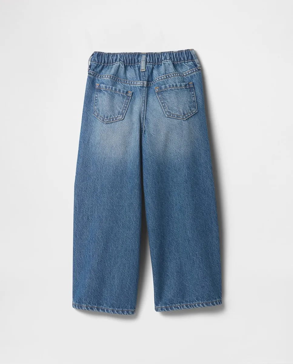 Этот стиль выполнен с использованием 5% переработанного хлопка. По сравнению с использованием новых материалов, использование переработанных материалов помогает сократить расход ресурсов и количество отходов. | Джинсовая ткань без эластана. | Средняя индиго-стирка с эффектом выцветания и потертостей. | Застежка на кнопки (размеры 2T-5T имеют застежку-крючок и молнию). | Классический стиль с пятью карманами. | Шов в форме сердца на штанинах.