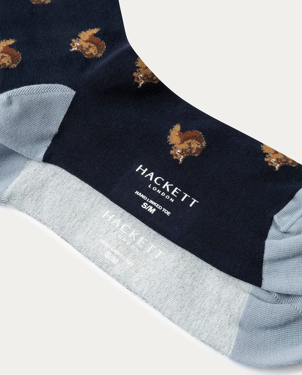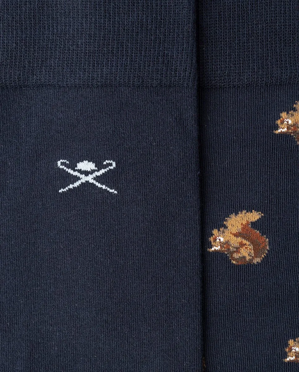 Набор из 2 пар носков из чесаного хлопка, состоящий из однотонного носка и носка с жаккардовым рисунком белок, с контрастным мыском и логотипом на подошве.