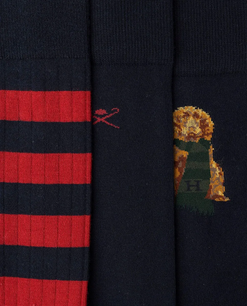 Коробка из трех мужских носков с узором Hackett, синий