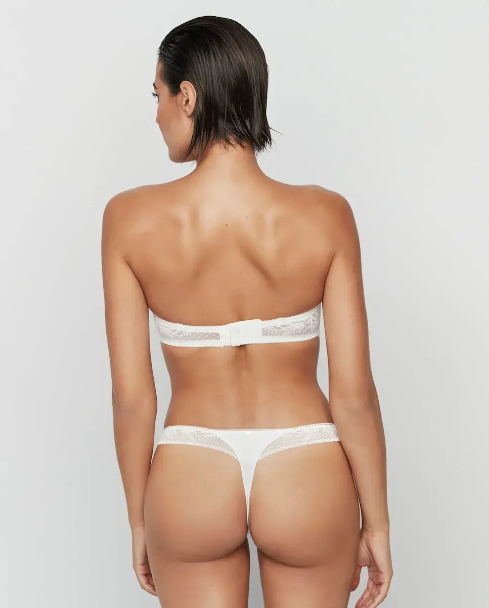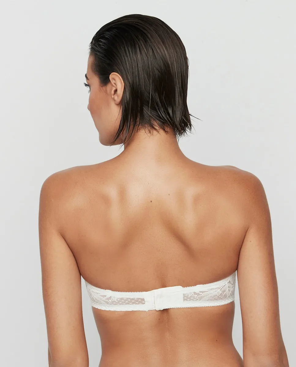 Бюстгальтер без бретелек с гладкими чашками. В комплект входят съемные бретельки, которые можно использовать по желанию. Имеет косточки и чашки из поролона. Оснащен основанием и боковыми косточками. Подчеркивает грудь и обеспечивает хорошую поддержку благодаря силиконовой окантовке, которая предотвращает нежелательное скольжение. Застежка на крючки имеет два варианта размера в зависимости от размера бюстгальтера. Коллекция Malitzia, к которой он относится, представляет собой идеальное сочетание деликатности и смелости.