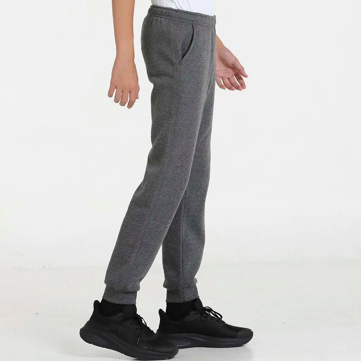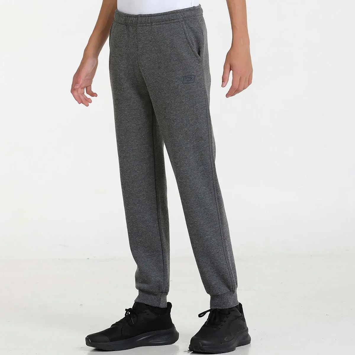 Детские брюки из флиса с внутренней отделкой, боковыми карманами, регулируемым эластичным поясом с шнурком, с тиснением фирменного логотипа, манжеты в рубчик.