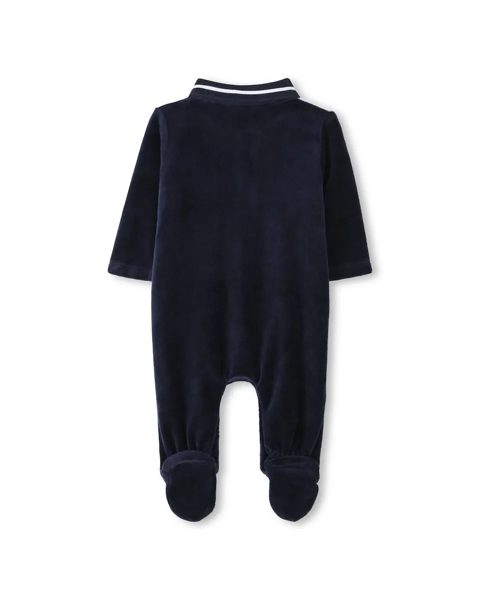 Эта модель BOSS из экологически чистого хлопкового бархата такая же мягкая, как и практичная. Комбинезон имеет полосатый пуговичный воротник, который придает спортивный и элегантный вид, а также пластиковую кнопочную застежку спереди, чтобы надевать его без стресса. Напечатанный логотип на груди добавляет тонкий и аккуратный стиль. Идеально для первых дней жизни малыша.