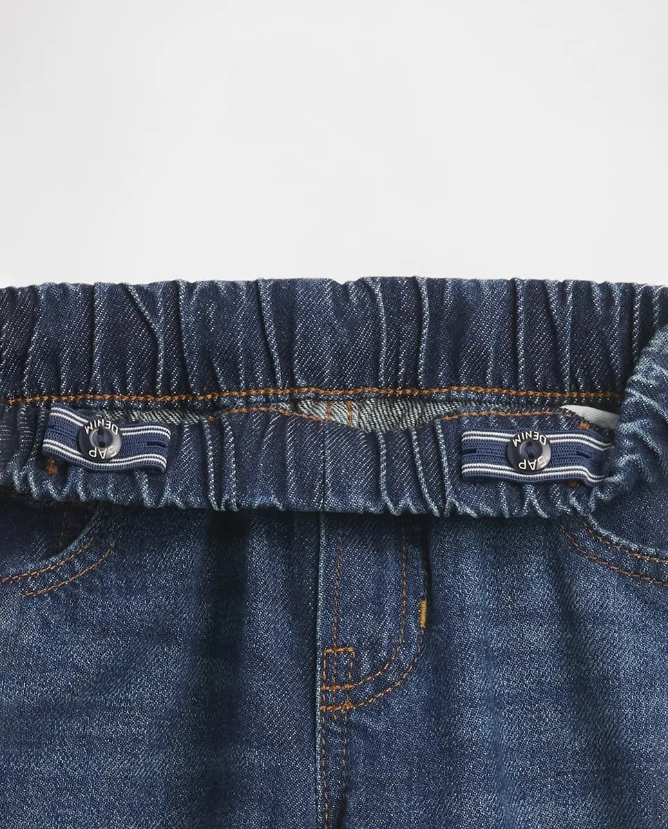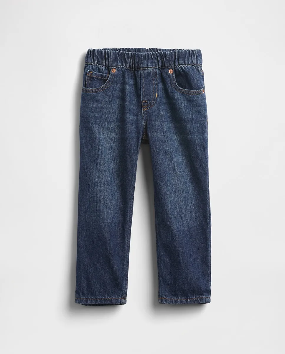 Настоящие джинсы baggy без эластичности. Эластичный пояс, декоративная молния. Классический пятикарманный стиль. Темная стирка. Сделано ответственно: Эта пара джинсов содержит 5% переработанного хлопка и является частью нашей программы Washwell, которая использует как минимум на 20% меньше воды по сравнению с традиционными методами стирки. С 2016 года мы сэкономили более миллиарда литров воды благодаря Washwell.