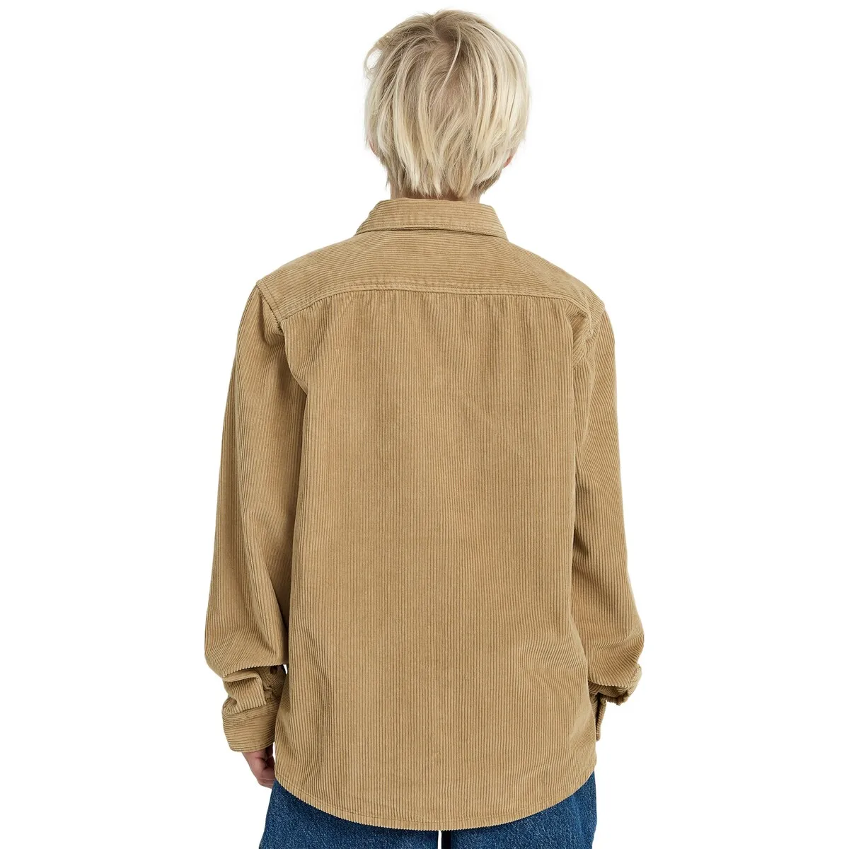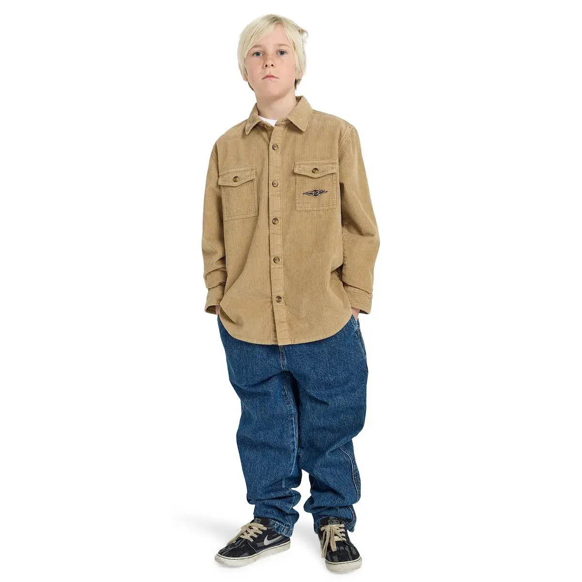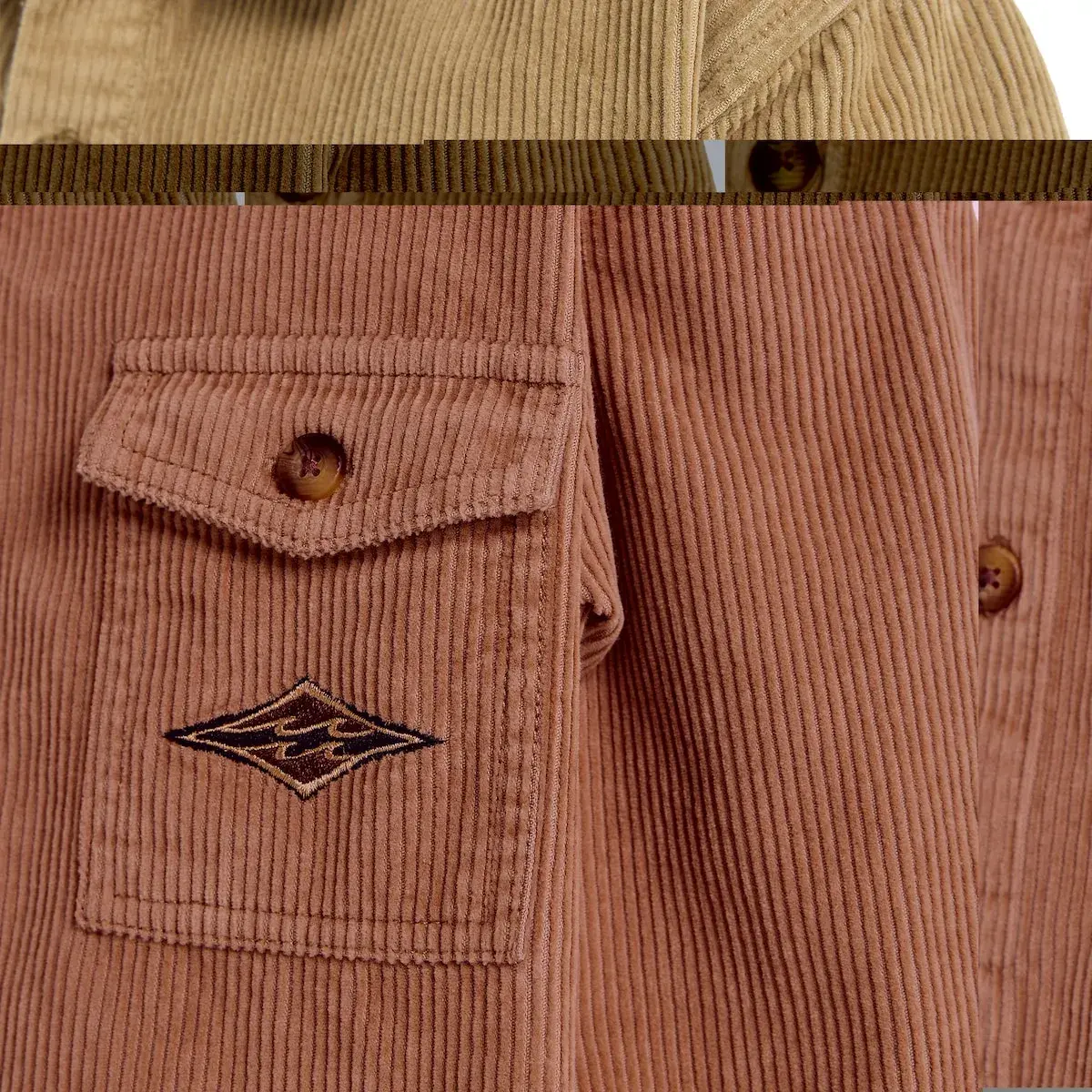 Рубашка с длинным рукавом для детей 8-16 лет. Особенности включают: ткань: вельвет, нагрудные карманы с вышивкой и прямой низ.