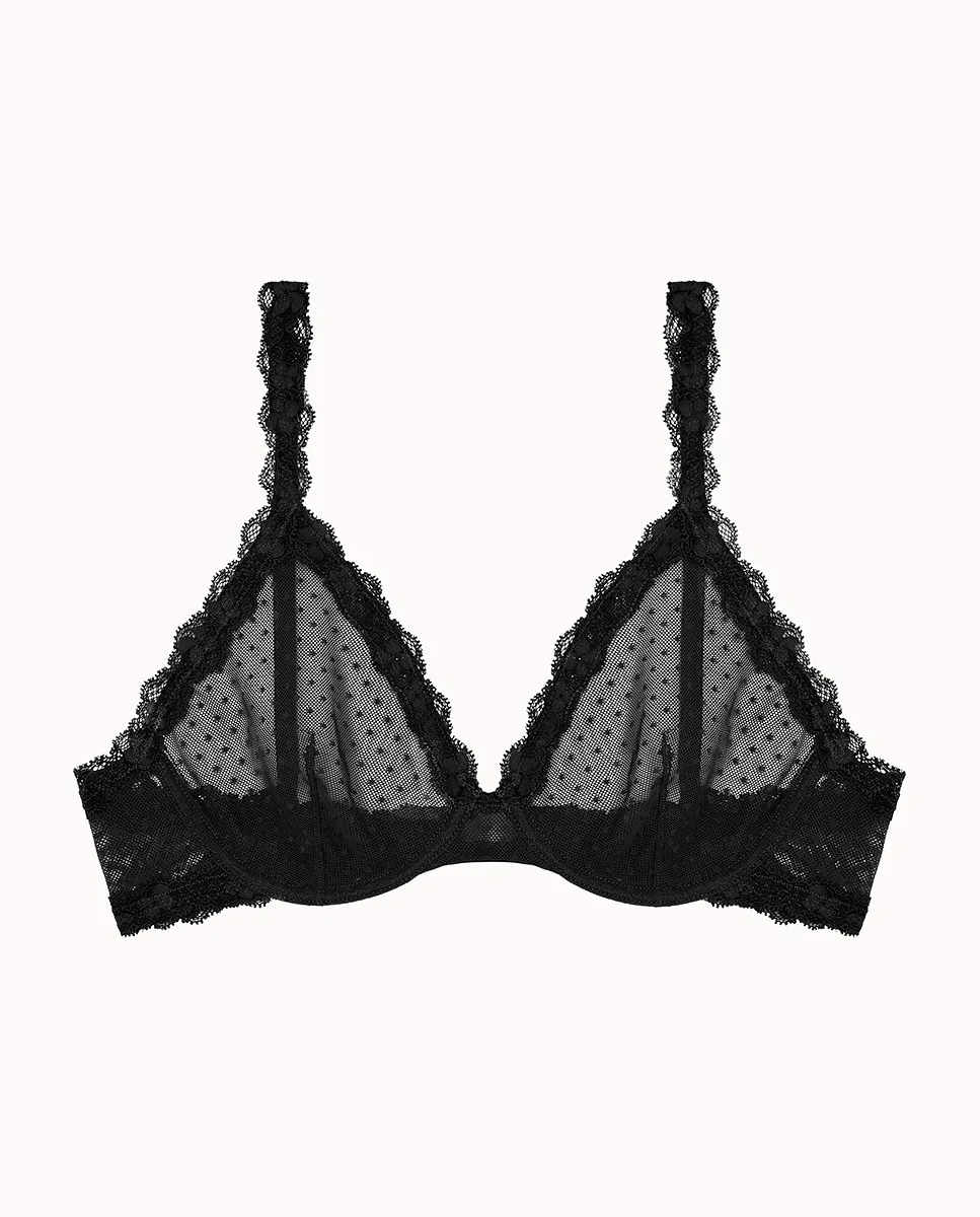 Бюстгальтер на каркасах без поролона из ткани plumeti с элегантной кружевной отделкой. Глубокий вырез. Коллекция Essentials.