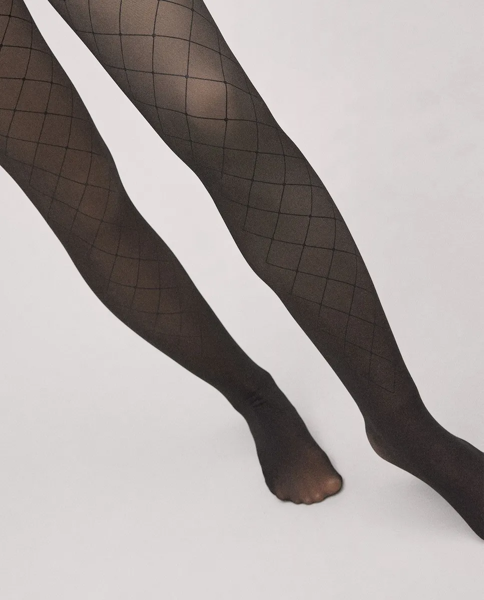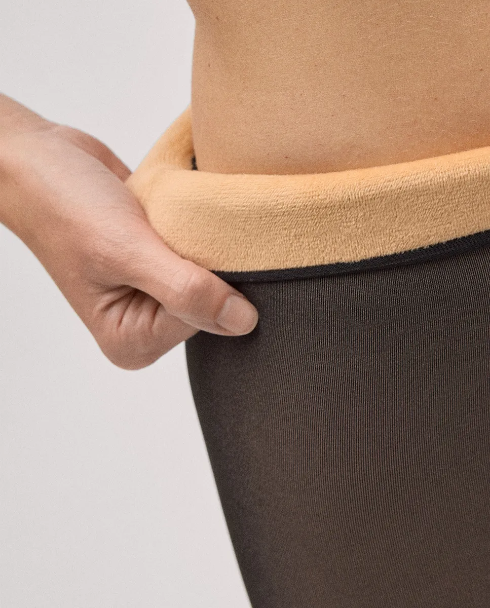 Прозрачные термо-колготки 160 ден с эффектом затемнения, с мягкой внутренней стороной. Эта модель с ромбовидным узором. 85% полиэстер, 15% эластан