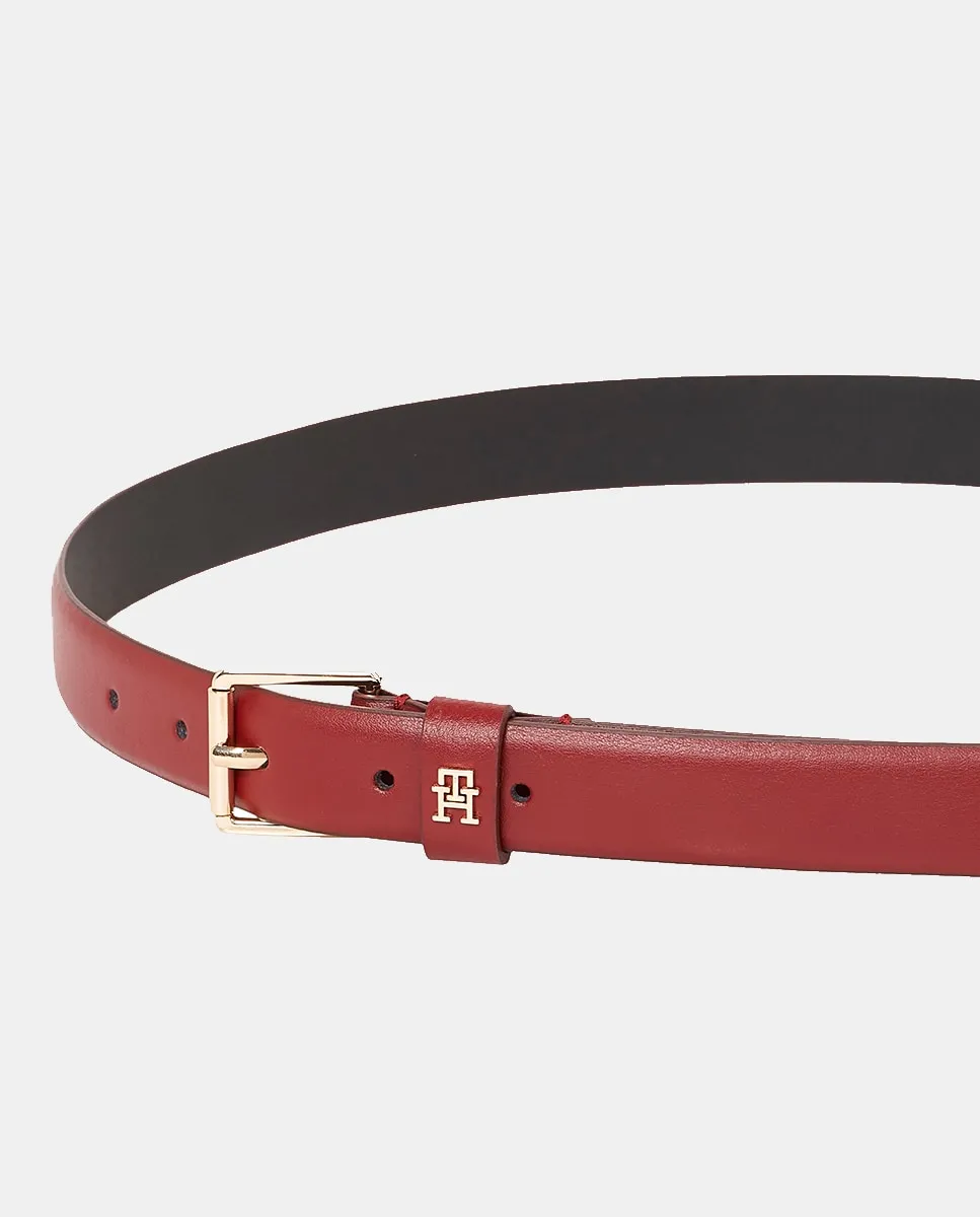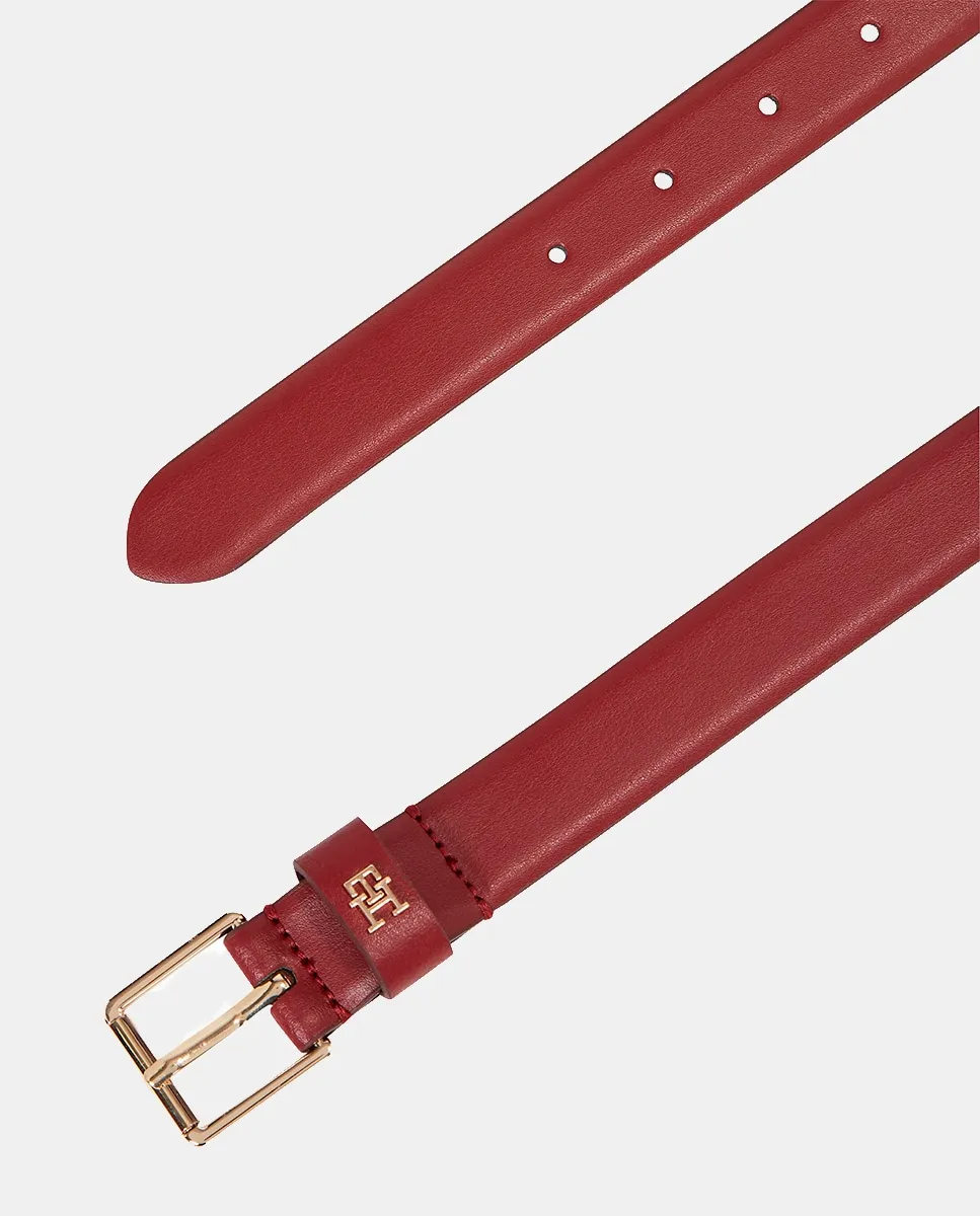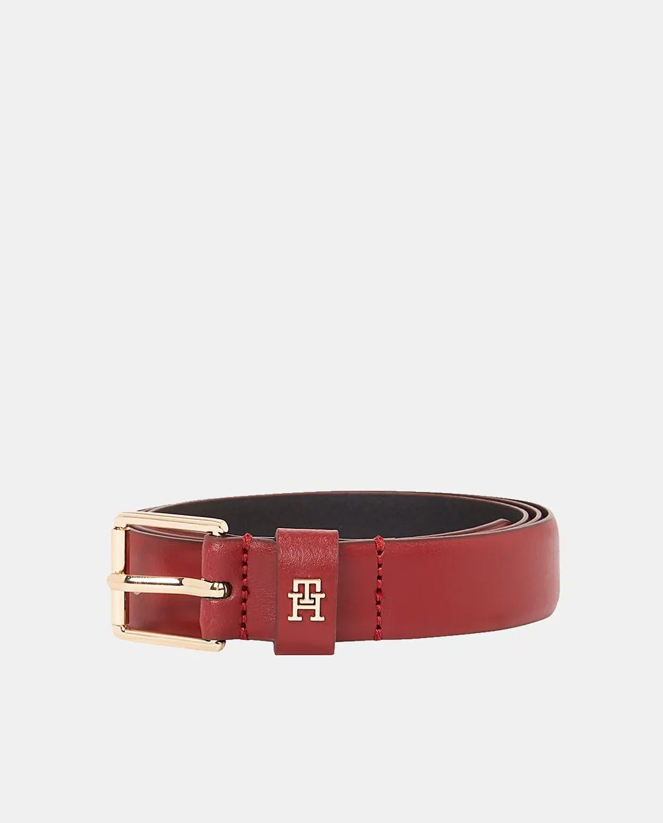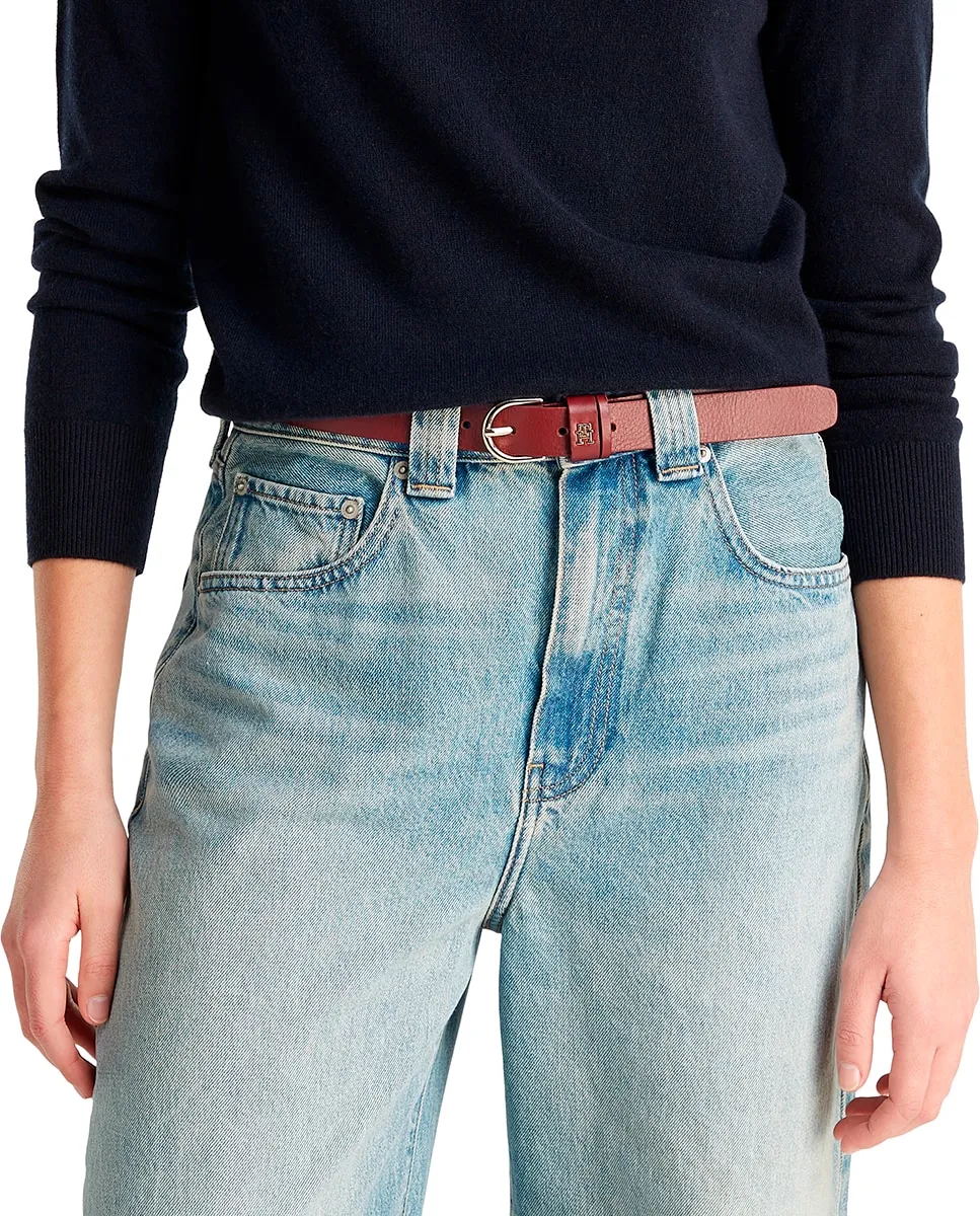 Женский ремень из бордовой кожи. Дизайн с логотипом Tommy Hilfiger на пряжке.