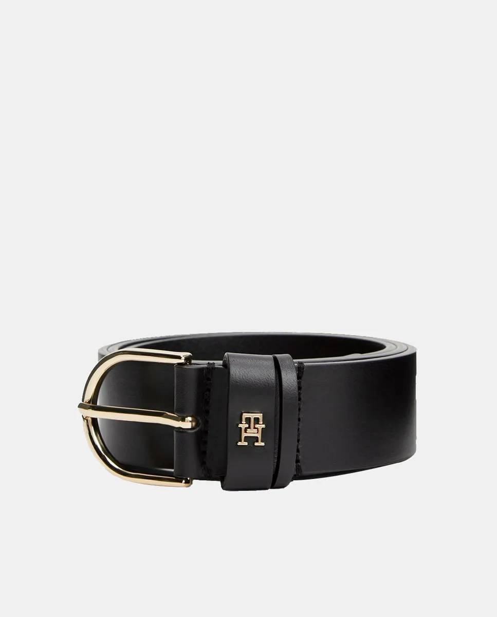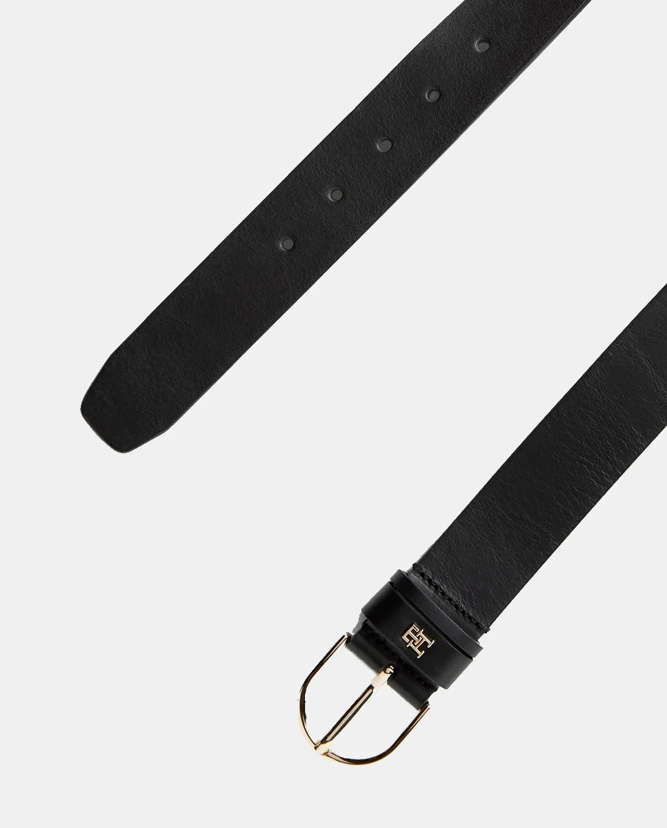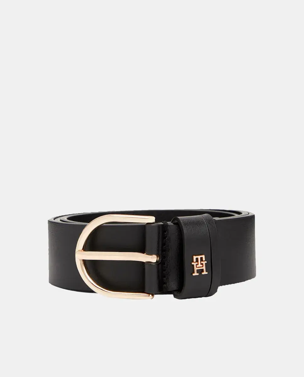 Женский ремень из кожи черного цвета. Дизайн с логотипом Tommy Hilfiger на пряжке.