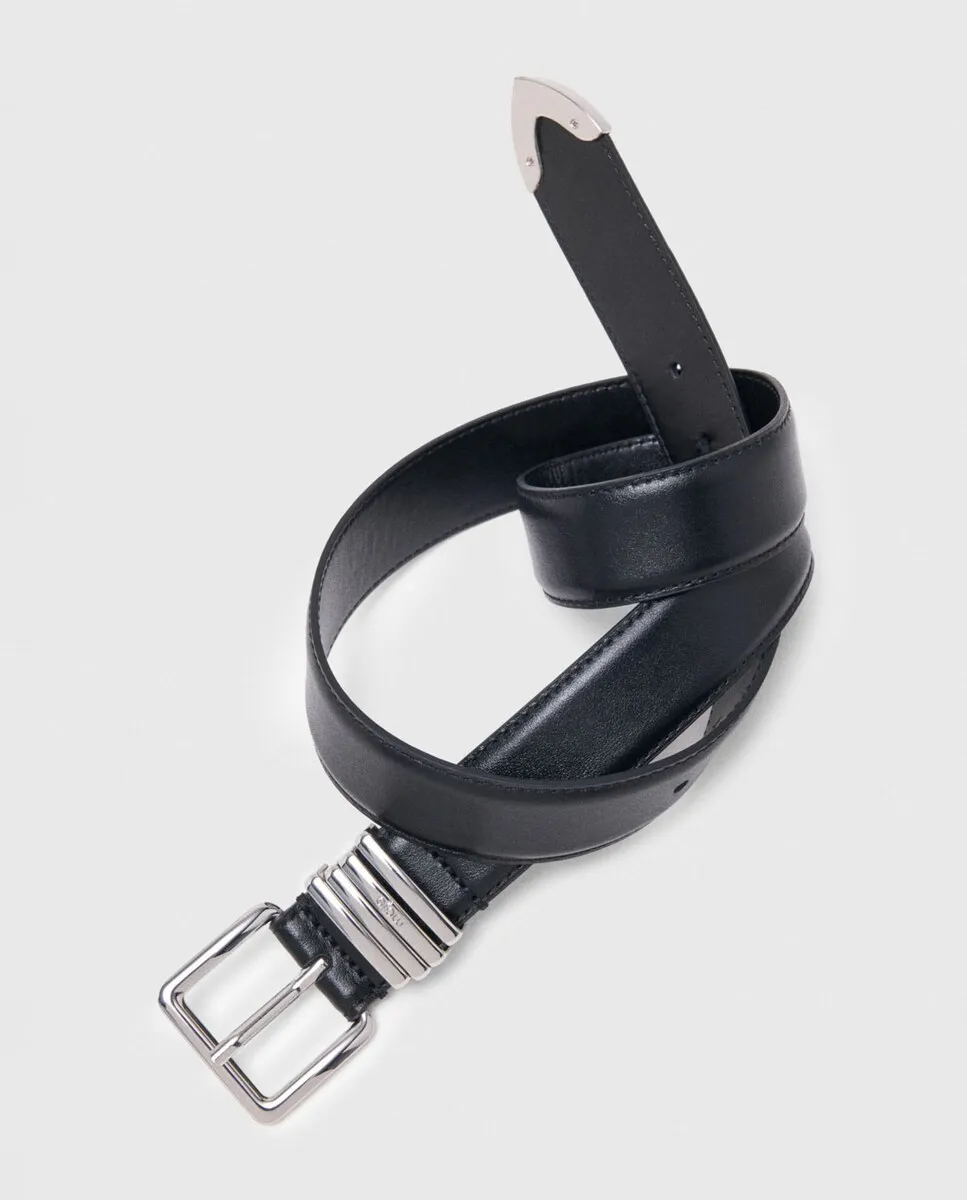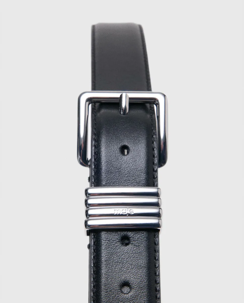Ремень из гладкой кожи. Средняя ширина. Пряжка из металла и 4 петли. Ширина: 3 см. В зависимости от сезона бренд Maje создает аксессуары, наполненные элегантностью и изысканностью, чтобы подчеркнуть силуэт со стилем. Графичный и структурированный, этот ремень из гладкой кожи стильно подчеркивает талию. Его продуманная пряжка и характерные детали делают его универсальным аксессуаром для повседневного использования.
