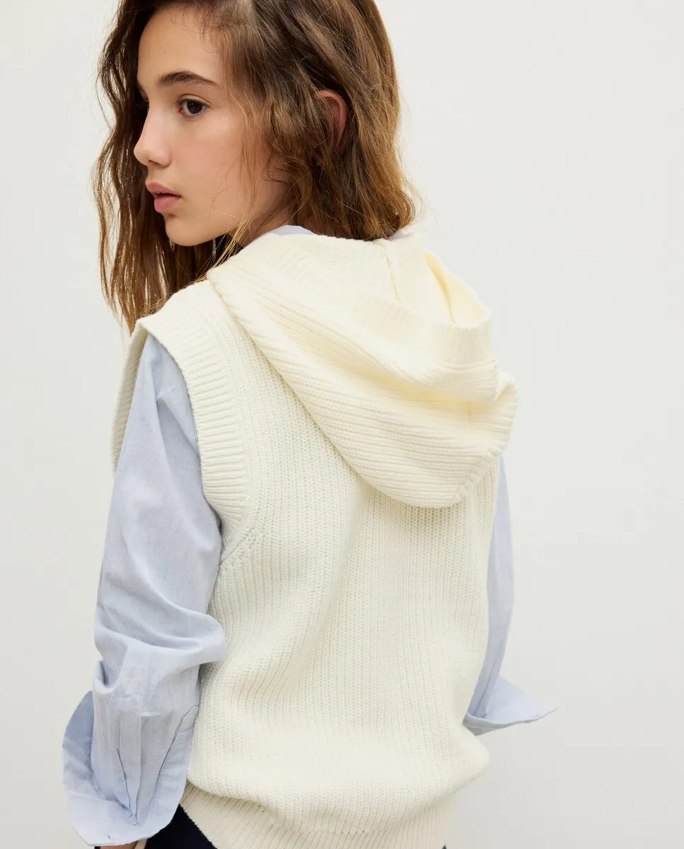 Вязаный жилет для девочки с капюшоном Kids El Corte Inglés, экрю