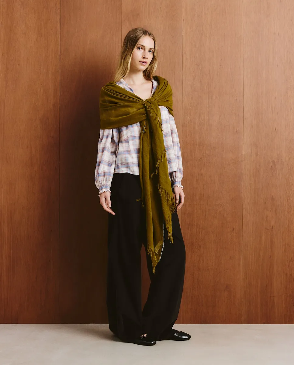 Однотонный платок с бахромой Southern Cotton, оливковый