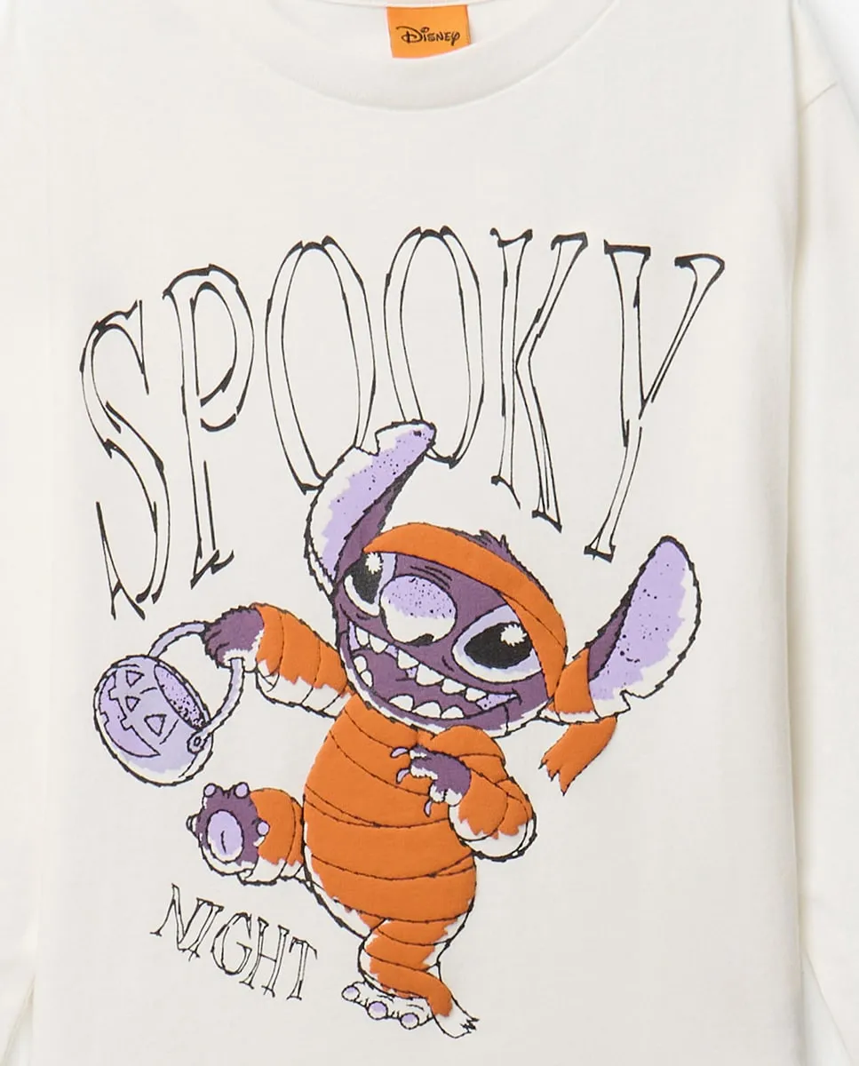 Футболка с длинными рукавами с принтом на тему Хэллоуина с изображением Стича. 100% хлопок