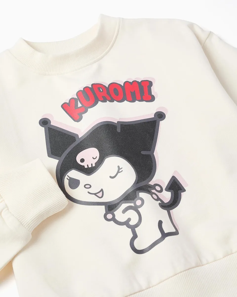Белая толстовка для девочки, 100% хлопок. С принтом Куороми на передней стороне. Ребристые края для идеальной посадки. Для поклонниц этого персонажа Sanrio!