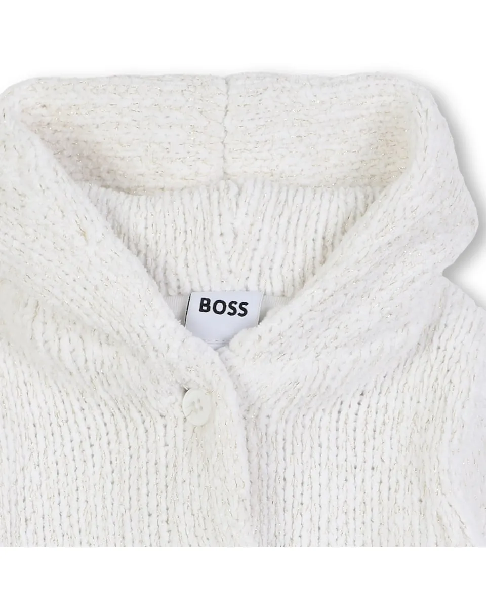Белая вязаная детская куртка с капюшоном BOSS Kidswear, белый 8 314₽