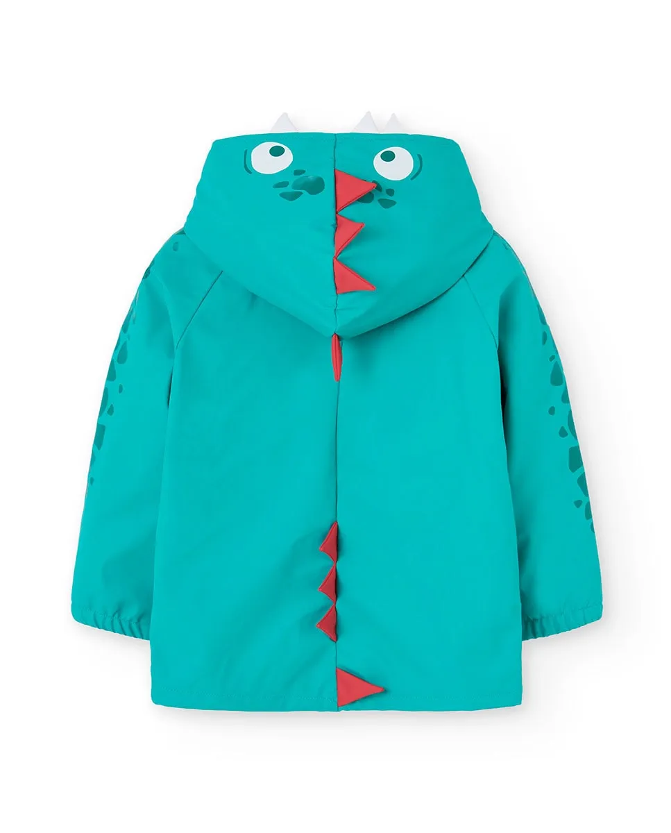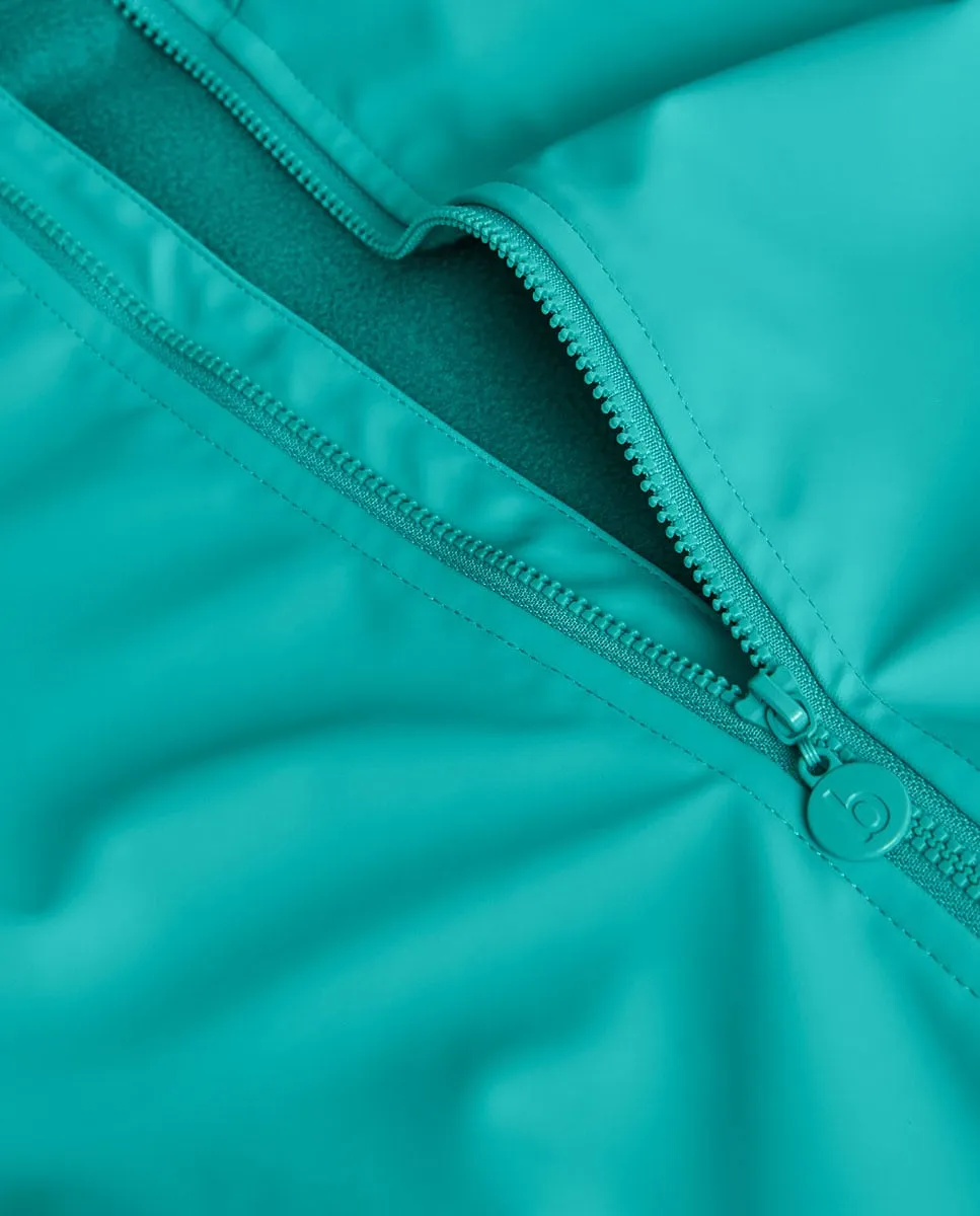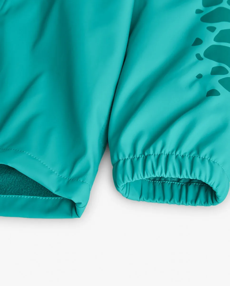 Водонепроницаемая куртка с капюшоном бирюзового цвета, разработанная для того, чтобы маленькие дети оставались сухими и комфортными в дождливые дни. Имеет забавный принт с силуэтами животных и капюшон с аппликациями, имитирующими плавники, добавляющими игривый штрих к образу. Выполнена из технического материала, обеспечивающего отличную защиту от воды. Доступна в размерах от 2 до 12 лет, оснащена удобной застежкой-молнией спереди. Сочетайте с яркой одеждой для создания веселого и практичного образа в дождливые сезоны.