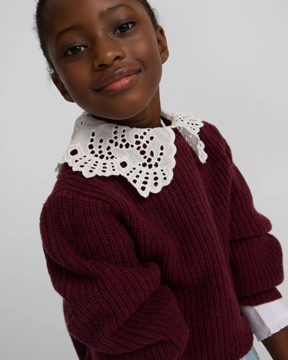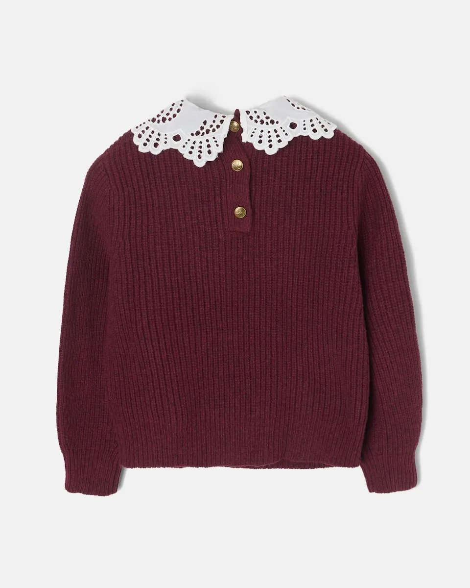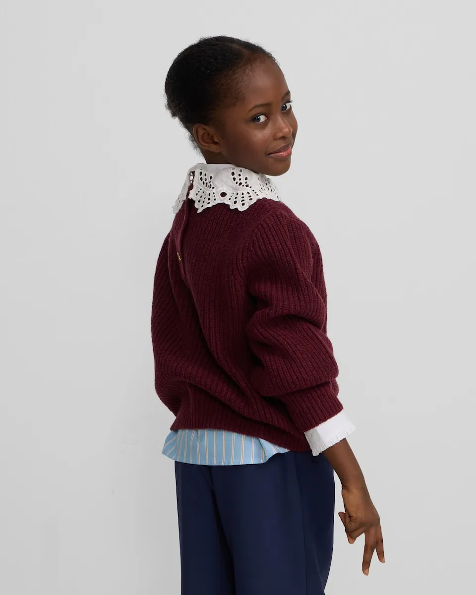 Свитер для девочки с вырезом-воротником бордового цвета Silbon