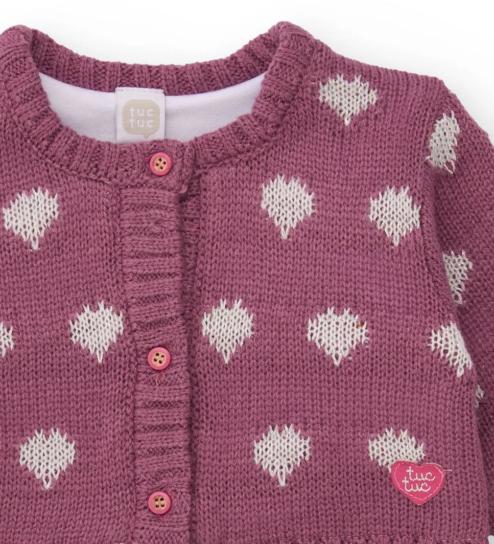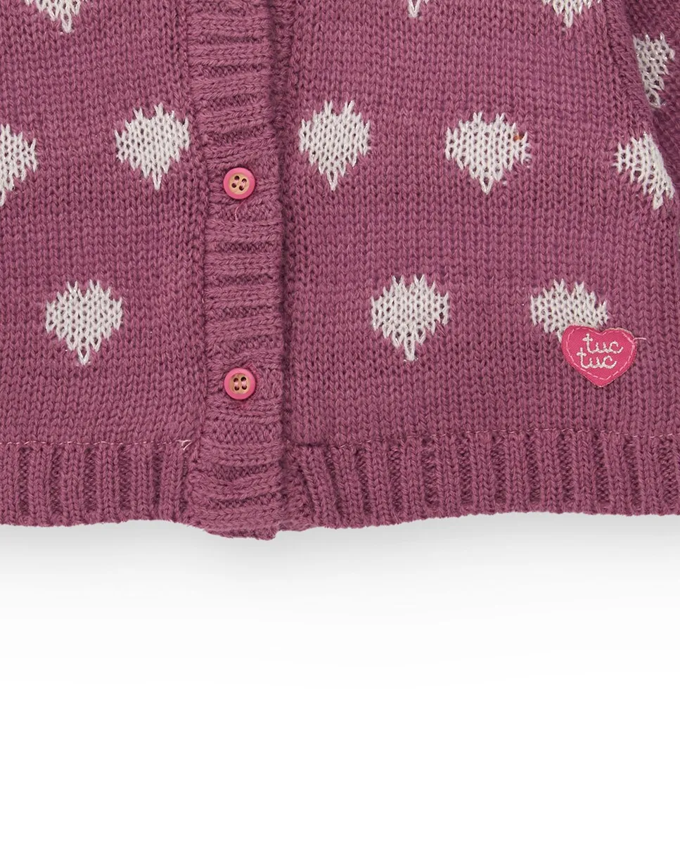 Фиолетовая вязаная детская куртка с рисунком в виде сердечек Tuc tuc