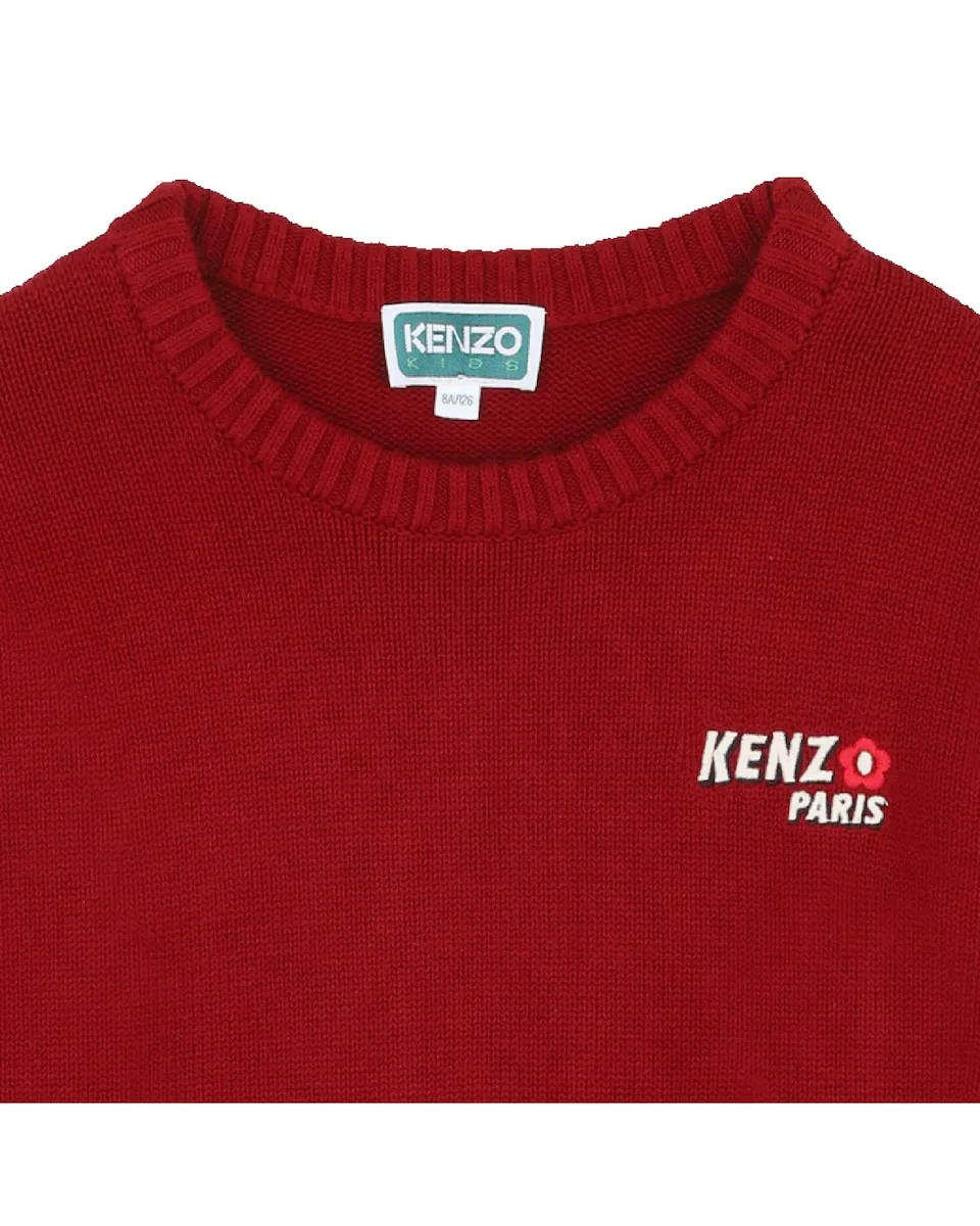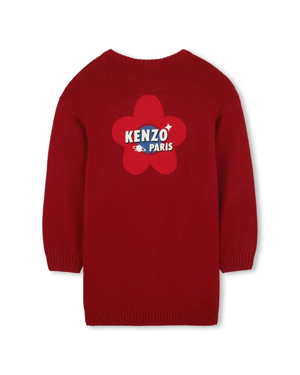 Красное детское платье с длинными рукавами Kenzo Kids