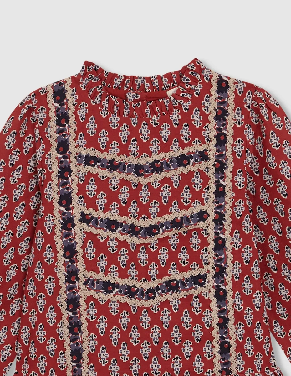 Детское платье с цветочным принтом и бретельками Gocco, гранатовый