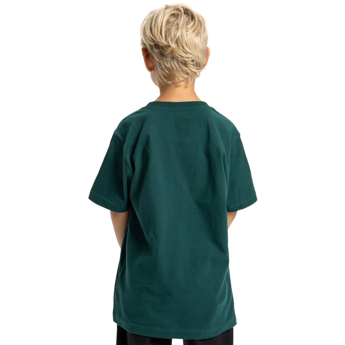 Футболка с коротким рукавом для детей 8-16 лет. Особенности включают: Ткань: хлопок, трикотаж из переработанного хлопка [200 г/м²], стандартный крой, круглый вырез, принты из пластизоля, расположенные по центру передней части, шелкография на ярлыке в центре затылка и ярлык, пришитый к подолу.