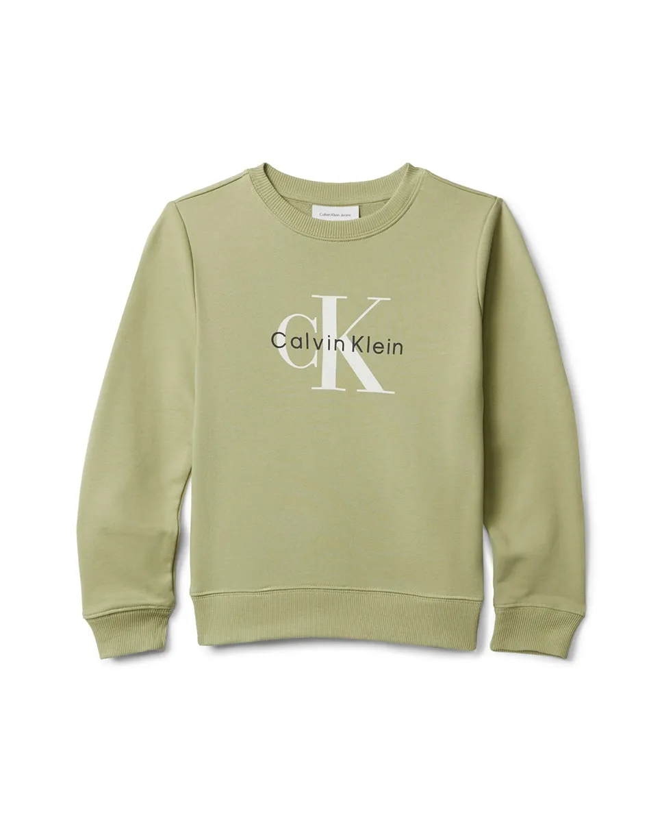 Детский свитшот, изготовленный из 100% экологичного хлопка, с круглым вырезом и логотипом CK-монограмма на груди.