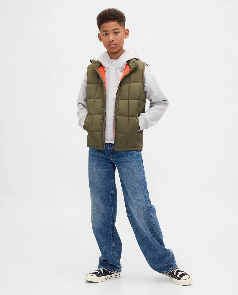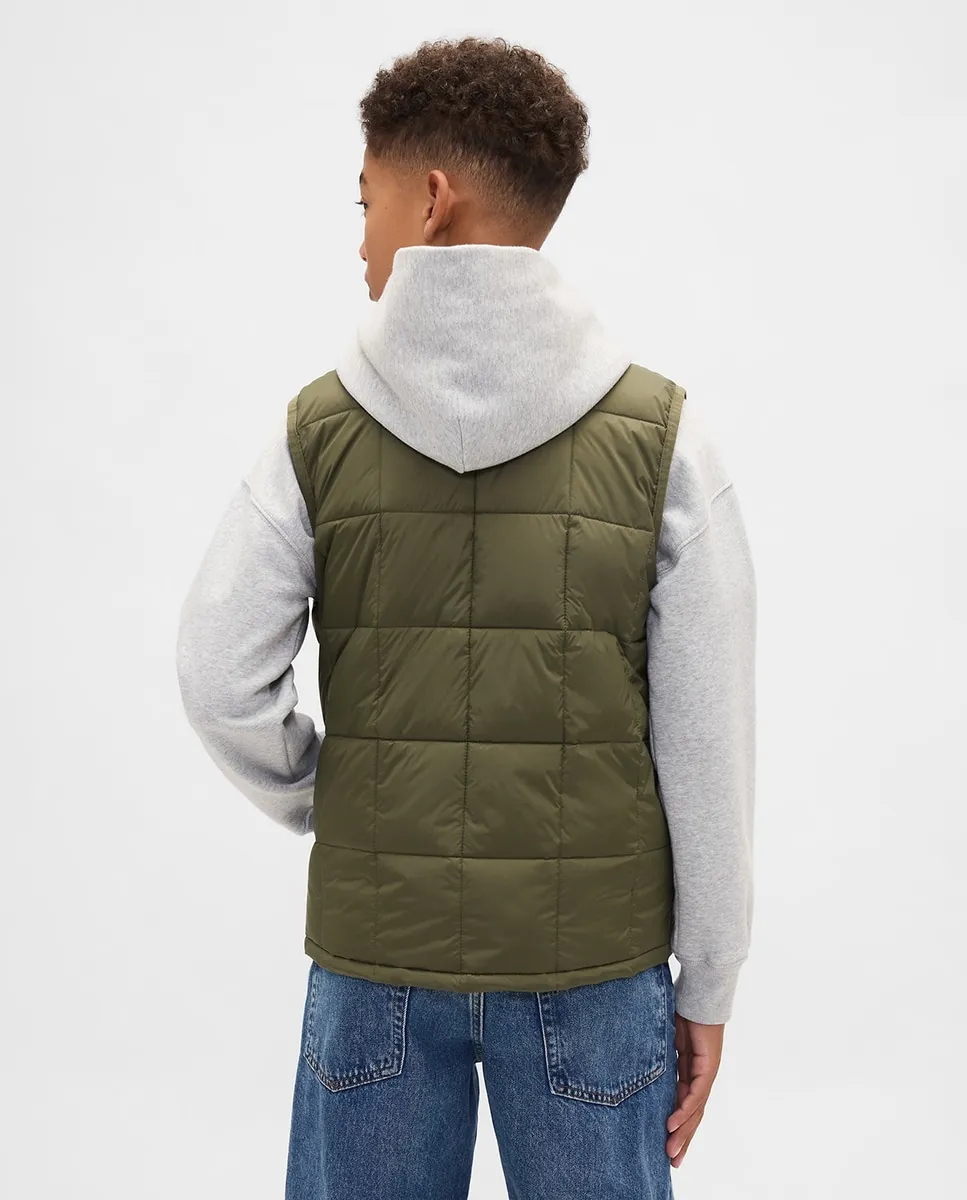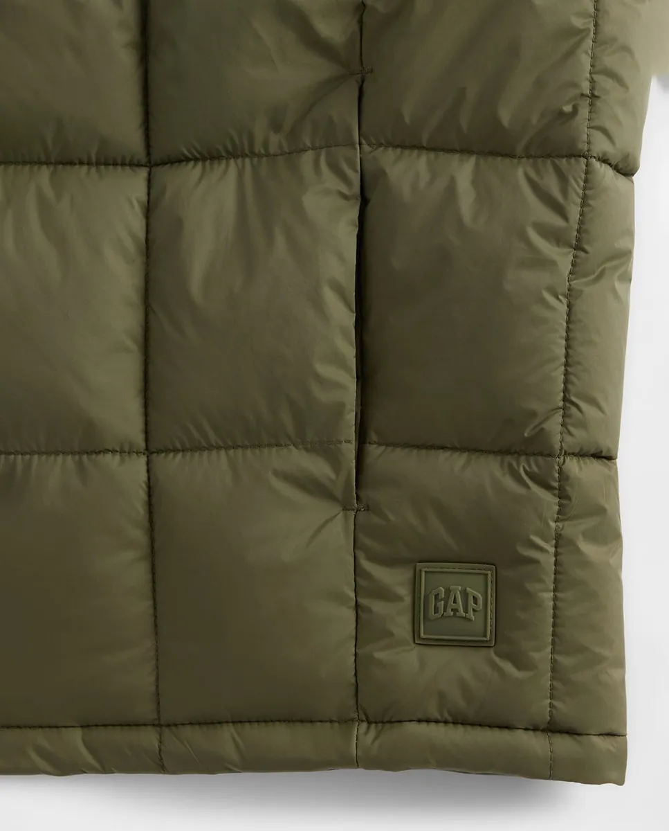 Жилет из мягкого и легкого нейлона. Воротник-стойка. Без рукавов. Передняя застежка на молнию. Наклонные карманы. Изготовлен из 100% переработанного нейлона. По сравнению с первичными материалами, использование переработанных материалов помогает сократить потребление ресурсов и количество отходов. Этот продукт произведен на фабрике, которая инвестирует в гендерное равенство и расширение возможностей женщин через программу RISE. Узнайте больше на сайте gapinc.com/equity.