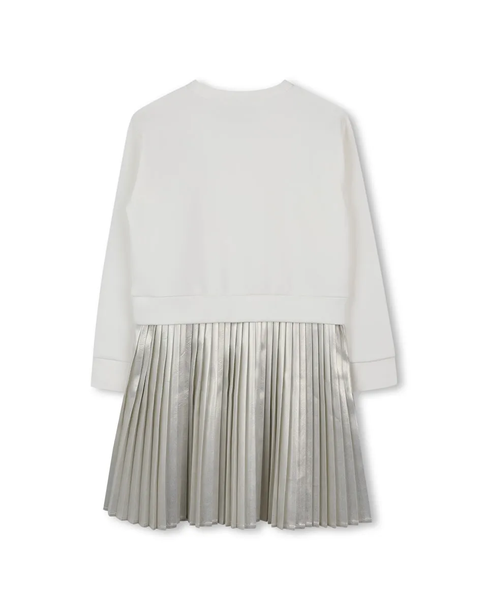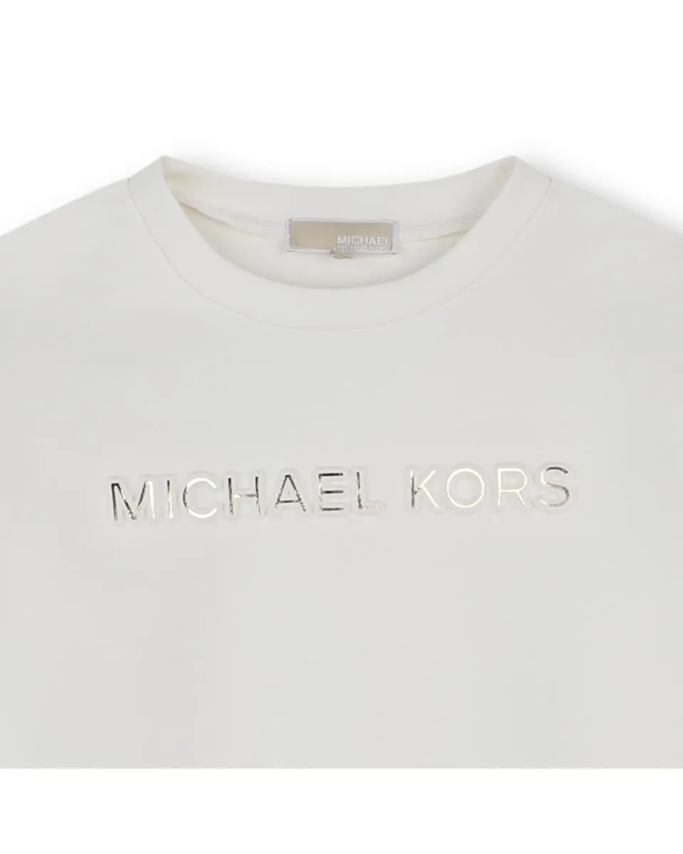 Элегантность и утонченность объединяются в этом платье с длинными рукавами от MICHAEL KORS. Верхняя часть из двойного трикотажа обеспечивает комфорт и мягкость, в то время как нижняя часть из золотого полиэстера добавляет легкий блеск. Рельефный золотой узор MICHAEL KORS с металлической отделкой придает роскошный и современный штрих для элегантного и смелого образа.