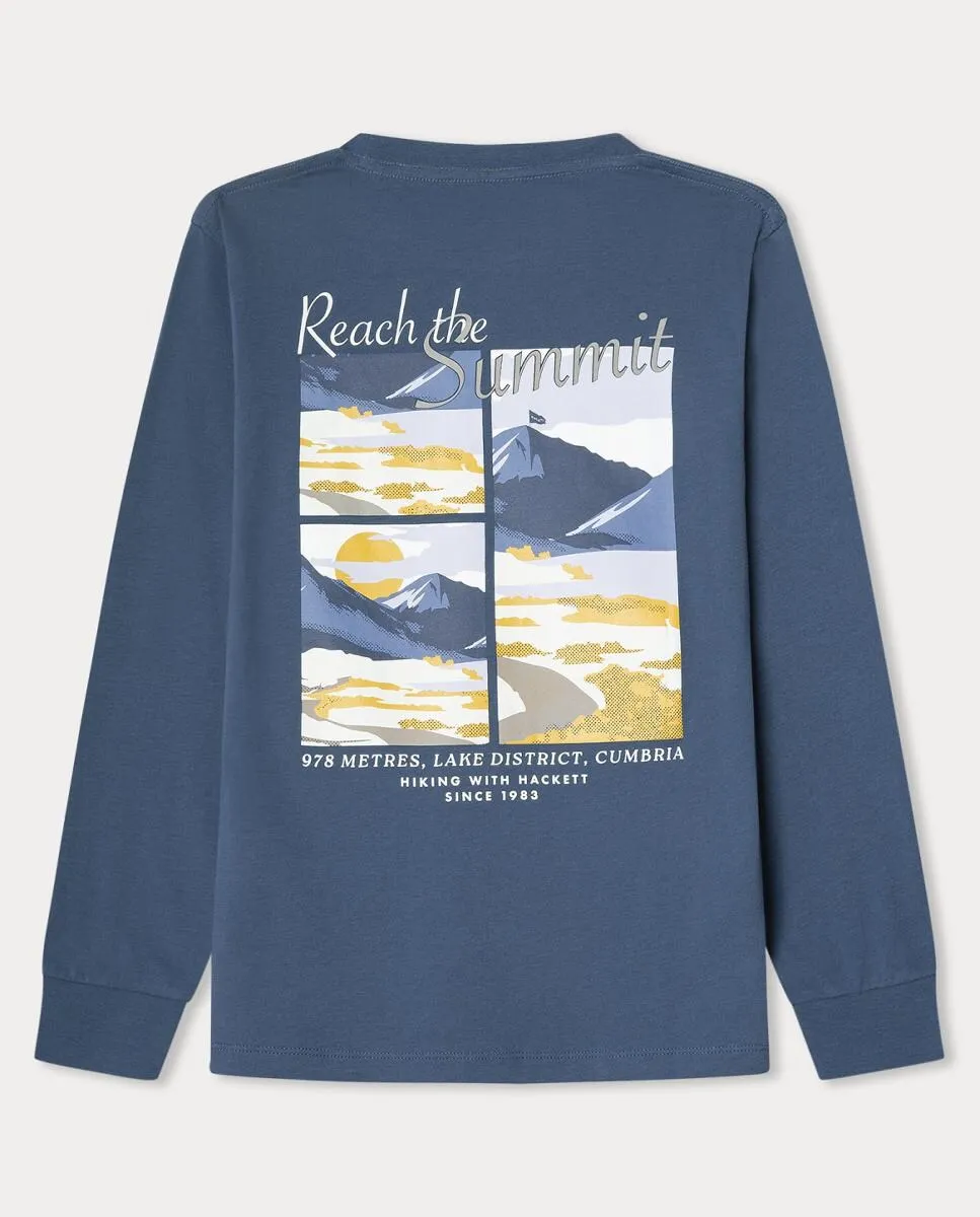 Футболка с длинными рукавами с логотипом на груди и графическим принтом на спине.