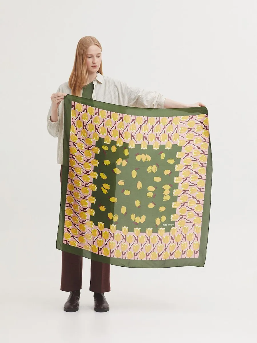 Женский платок с цветочным узором Nice Things, хаки
