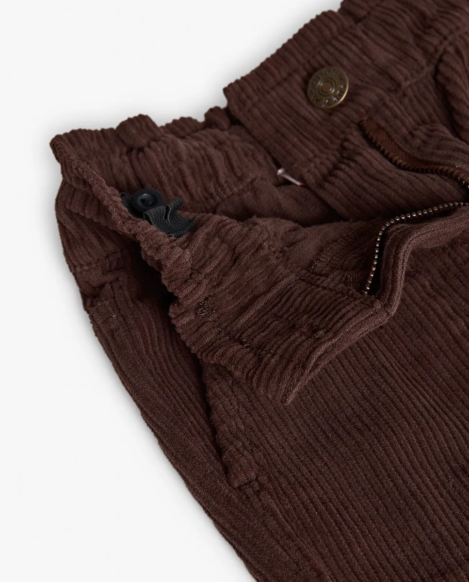 Вельветовые штаны для девочки теплого коричневого цвета, идеально подходящие для осенне-зимнего сезона. Выполнены из прочной и мягкой вельветовой ткани, которая обеспечивает комфорт и долговечность. Регулируемый эластичный пояс обеспечивает надежную и удобную посадку для повседневной носки или активного отдыха на свежем воздухе. Доступны размеры от 2 до 14 лет, этот универсальный дизайн прекрасно сочетается с свитерами и куртками, создавая повседневный и современный образ.