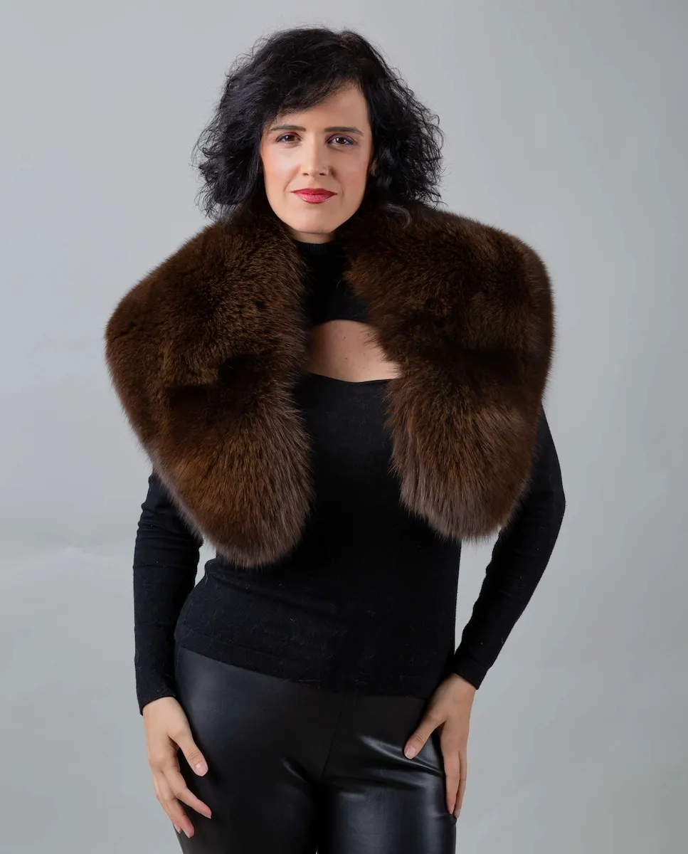 Эстола из серии Рока, сделанная из меха лисы с длинным волосом темно-коричневого цвета. Все изделия изготавливаются одно за другим вручную в Испании высококвалифицированными специалистами в области кожи. Все это сделано из 100% испанских шкур очень высокого качества.