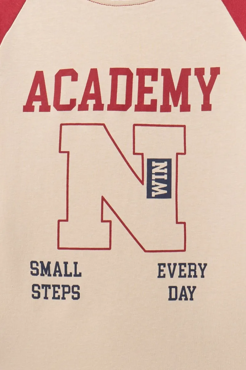 Футболка с круглым вырезом и рукавами реглан с принтом спереди. 100% хлопок