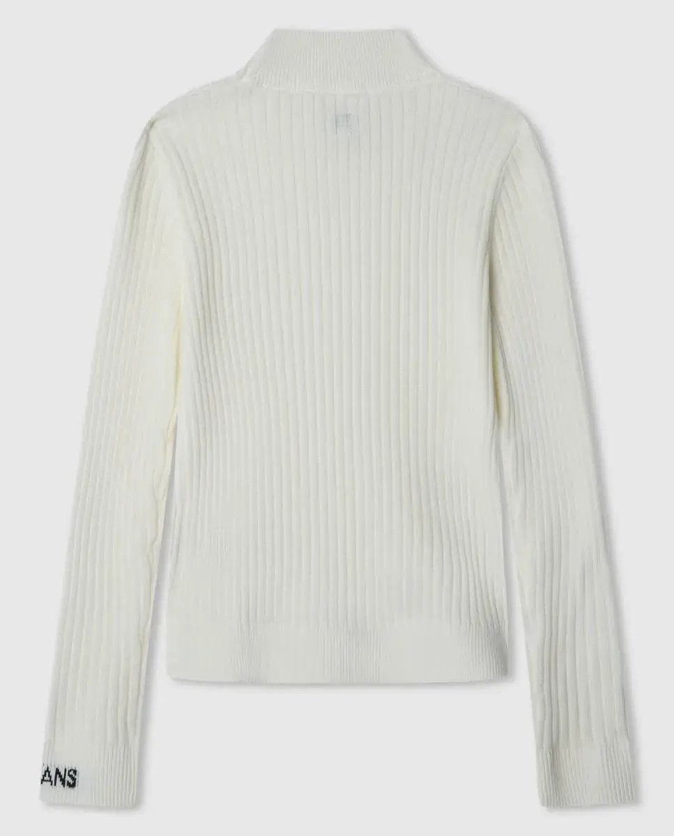 Обтягивающий трикотажный джемпер с рифленым узором разного размера, воротником Перкинс и контрастным логотипом на манжете