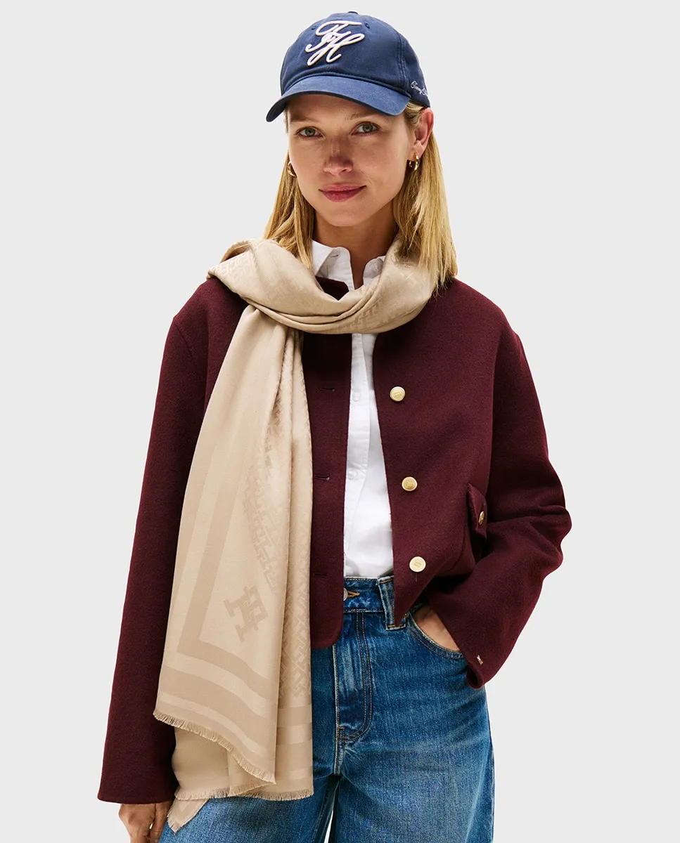 Женский шарф из экологически чистого модала кремового цвета. Дизайн с монограммой Tommy Hilfiger.