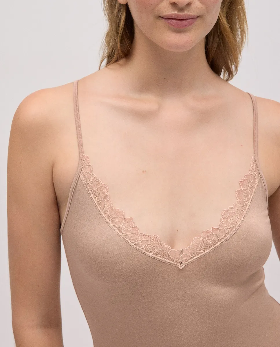 Майка на бретелях из бамбука, цвет слоновой кости. 95% бамбукового вискоза, 5% эластан